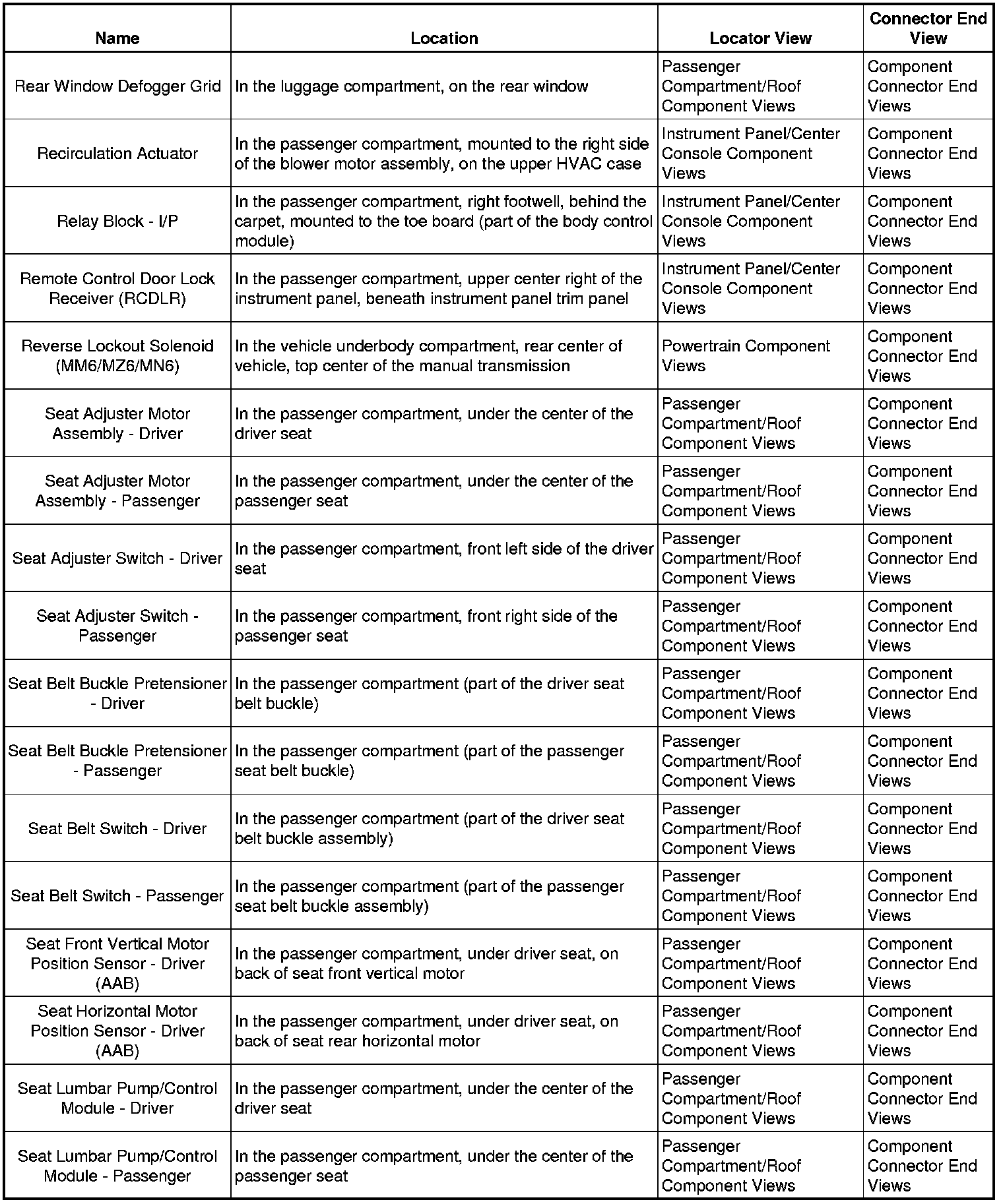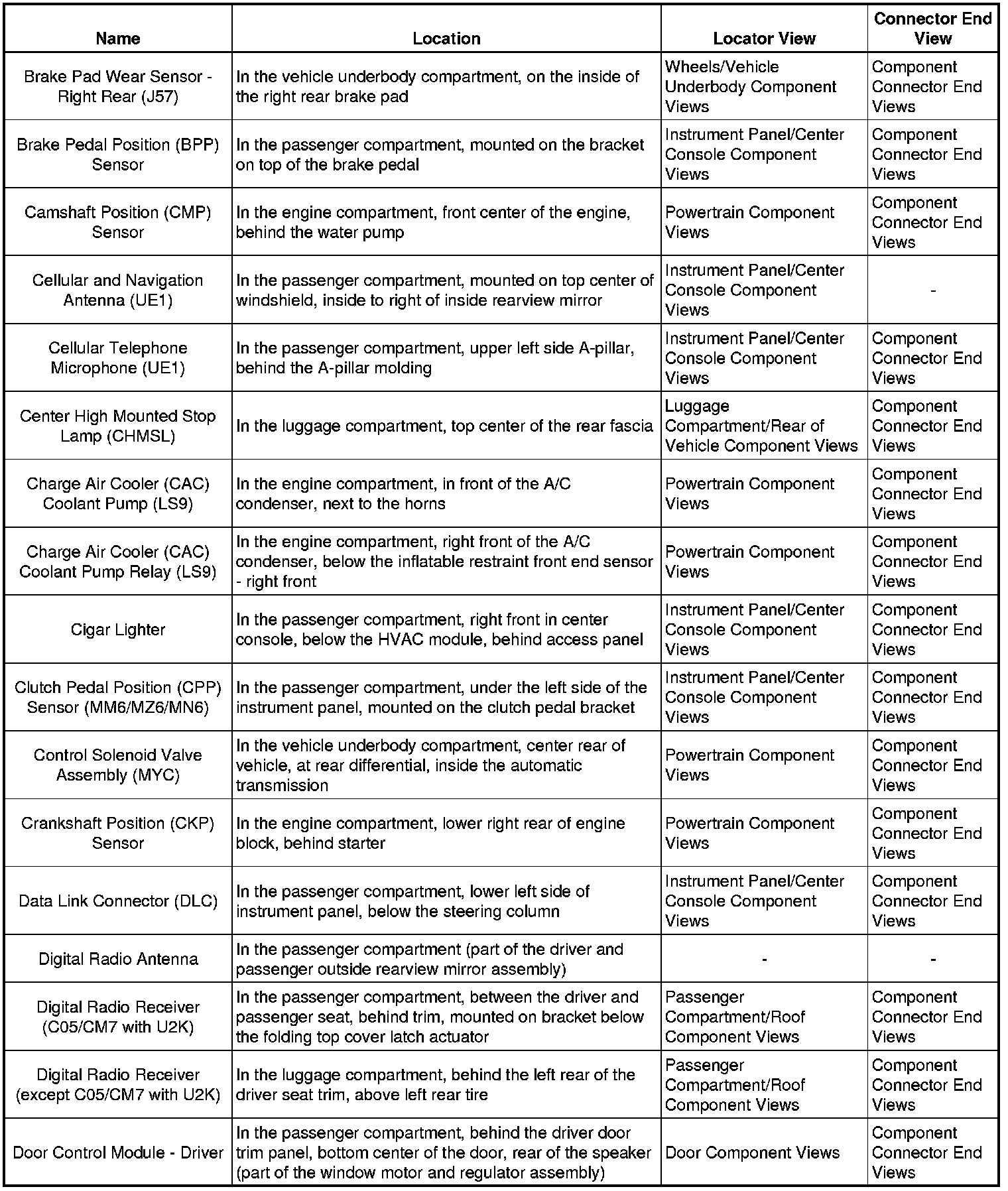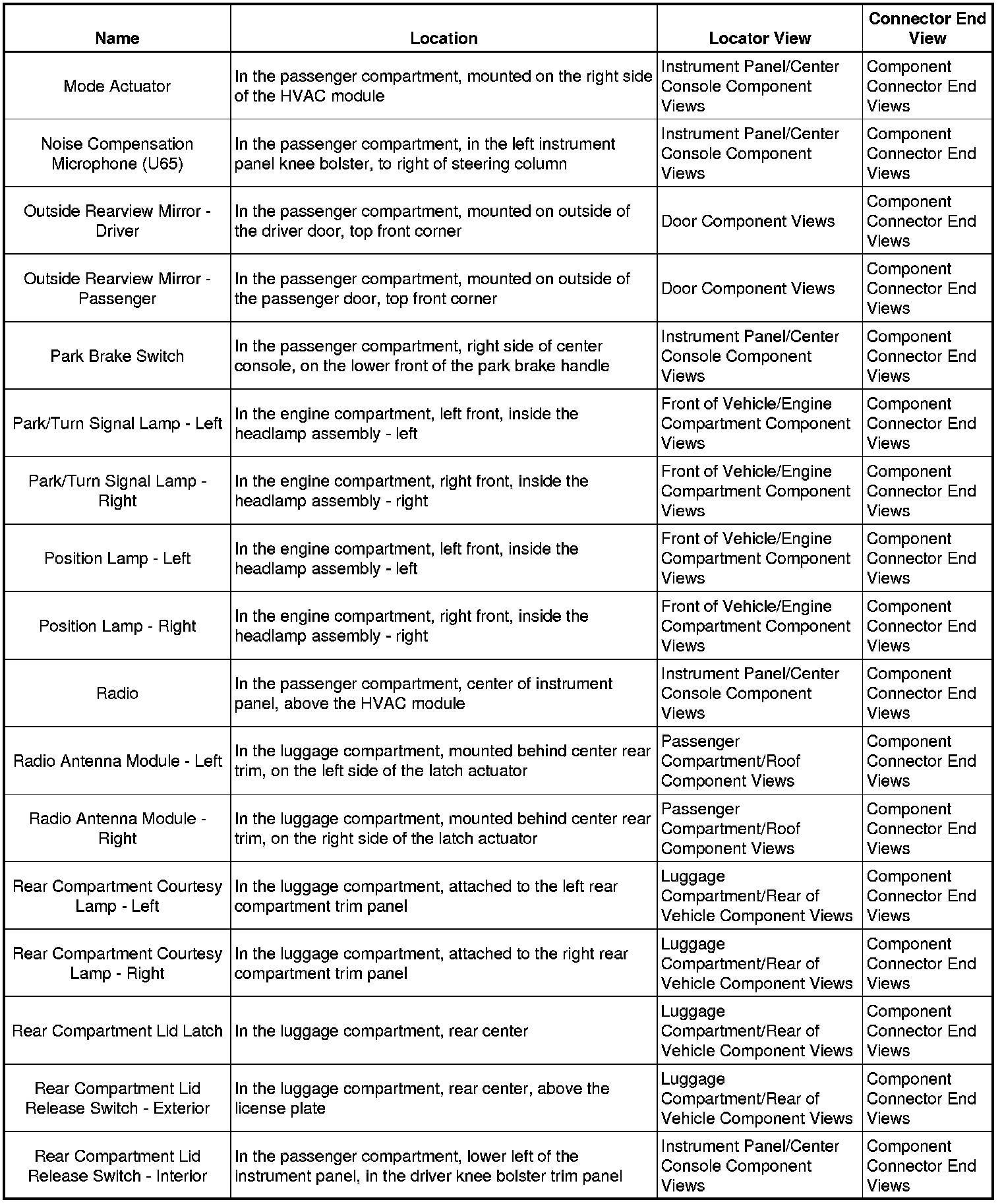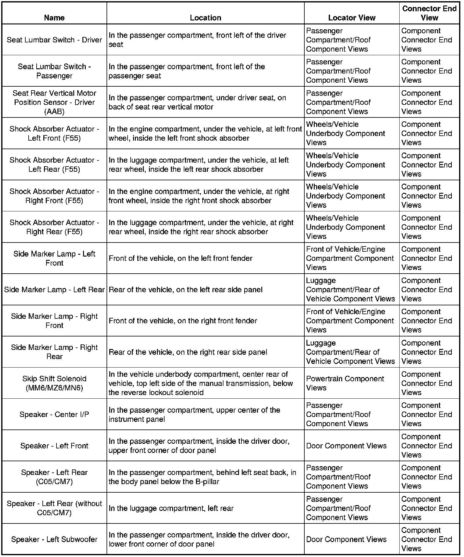 Master Electrical Component List