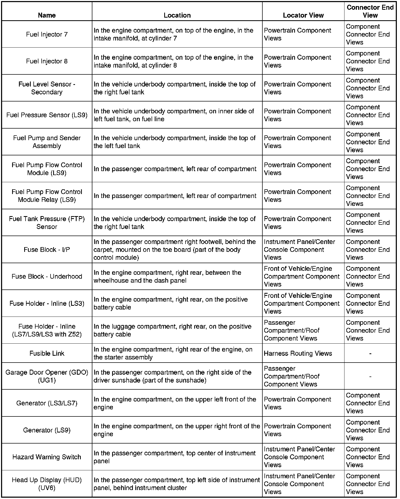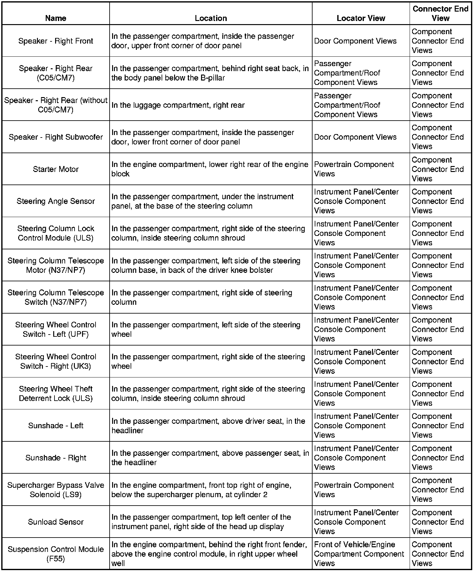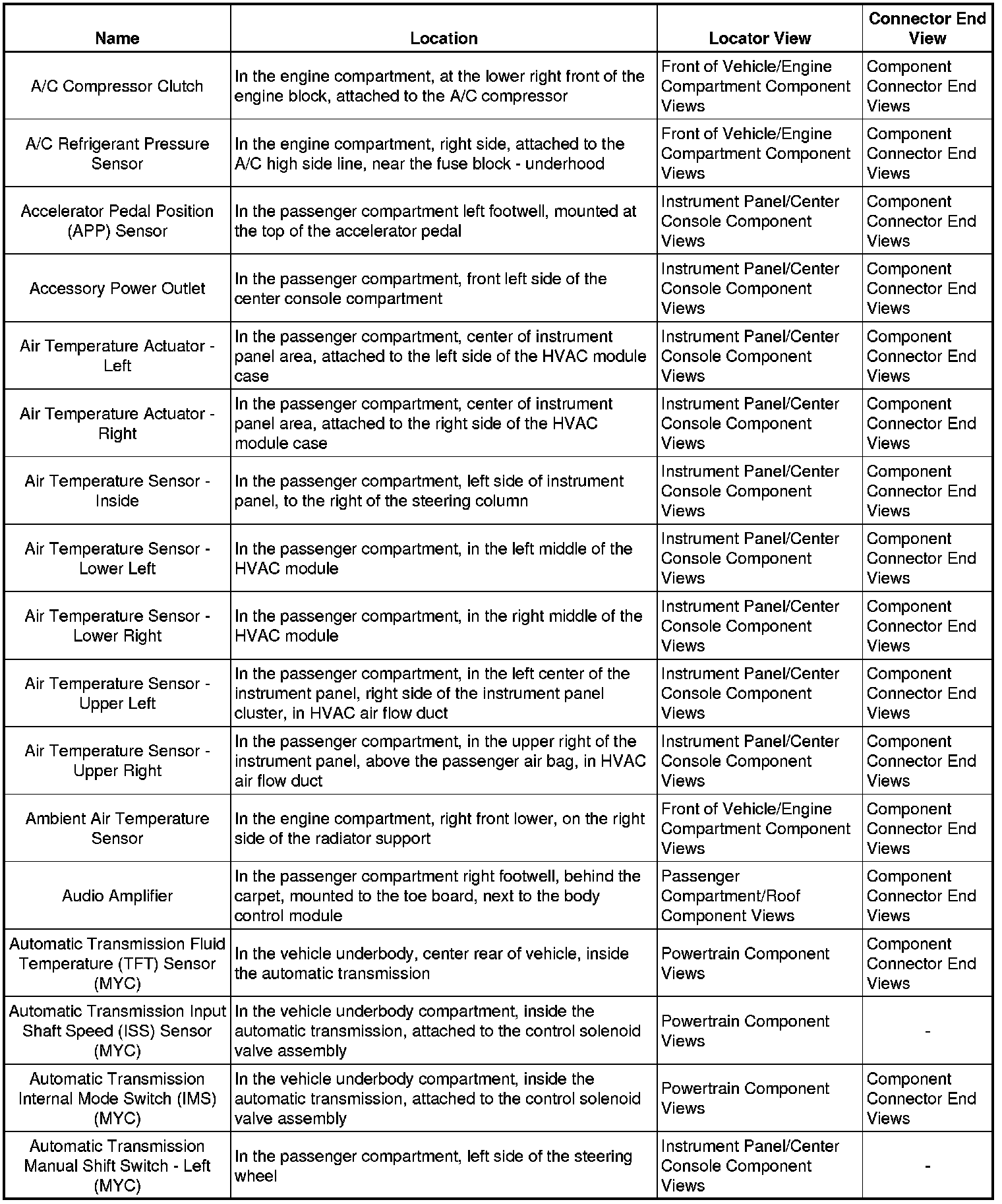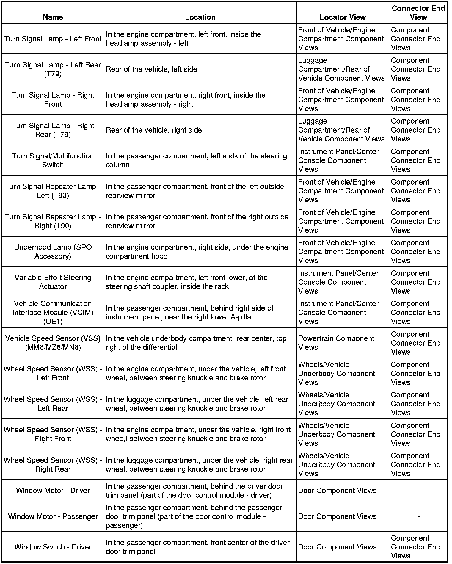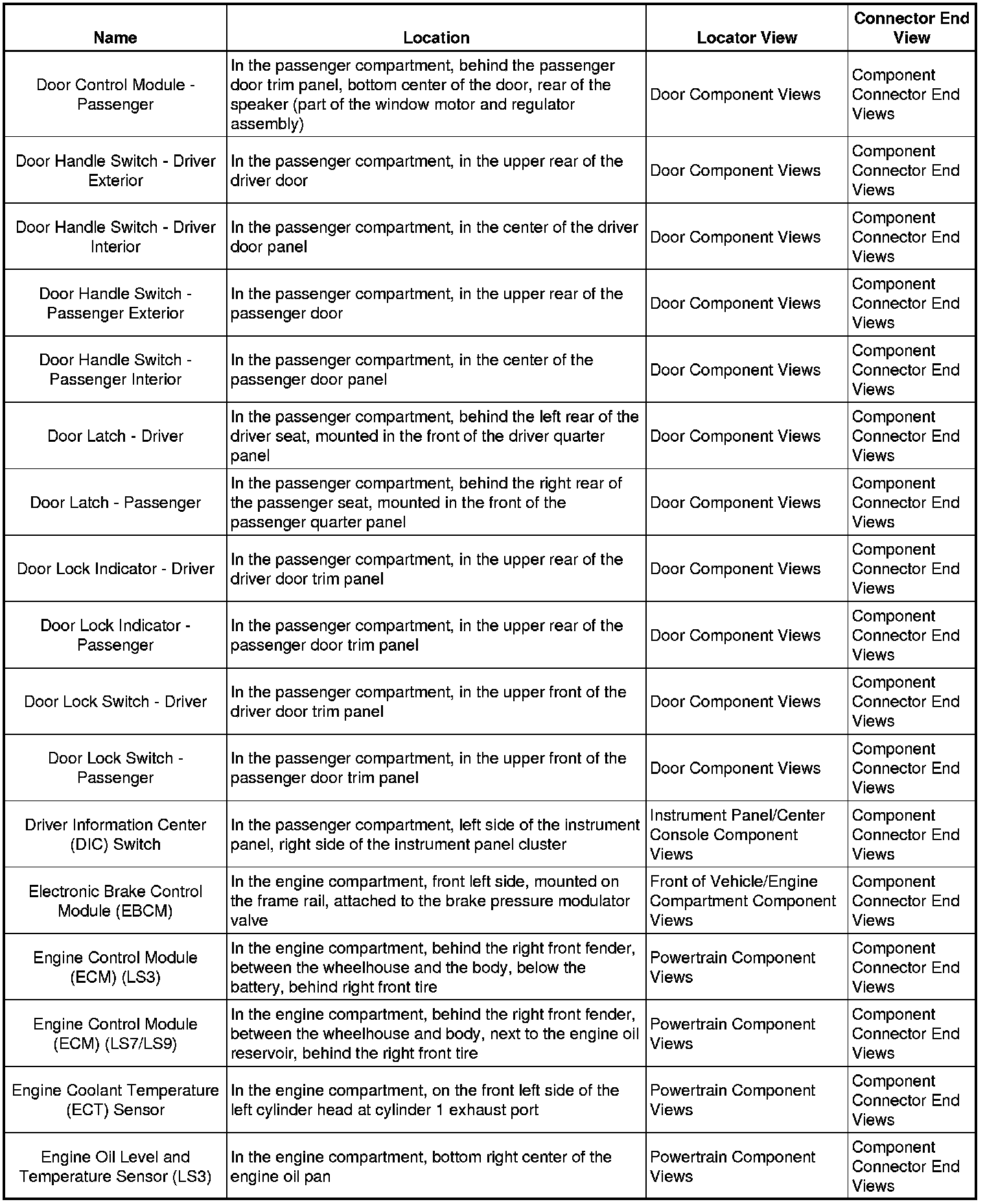 Master Electrical Component List