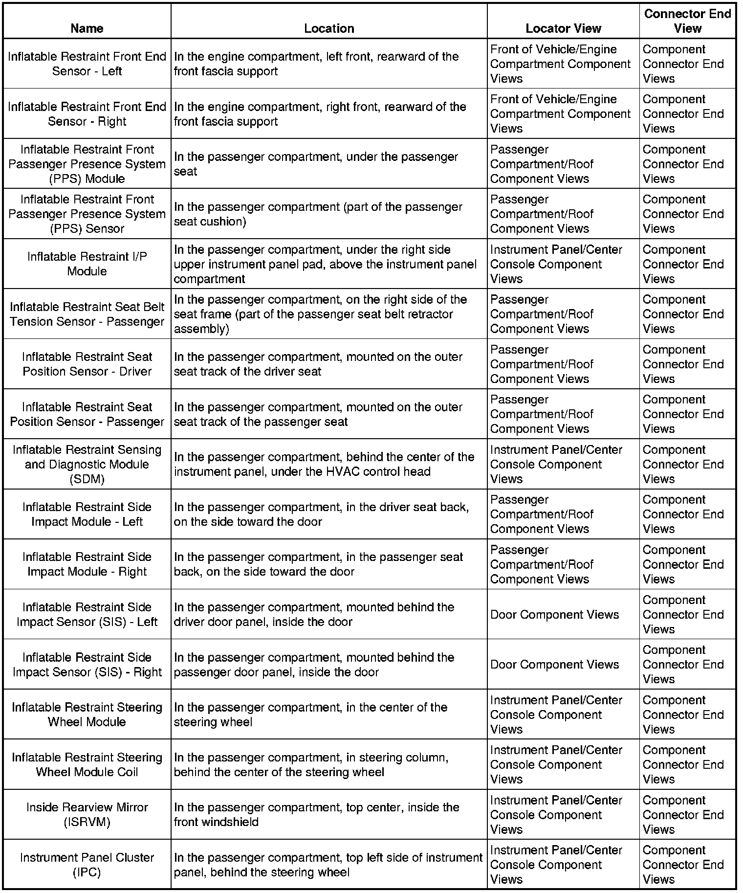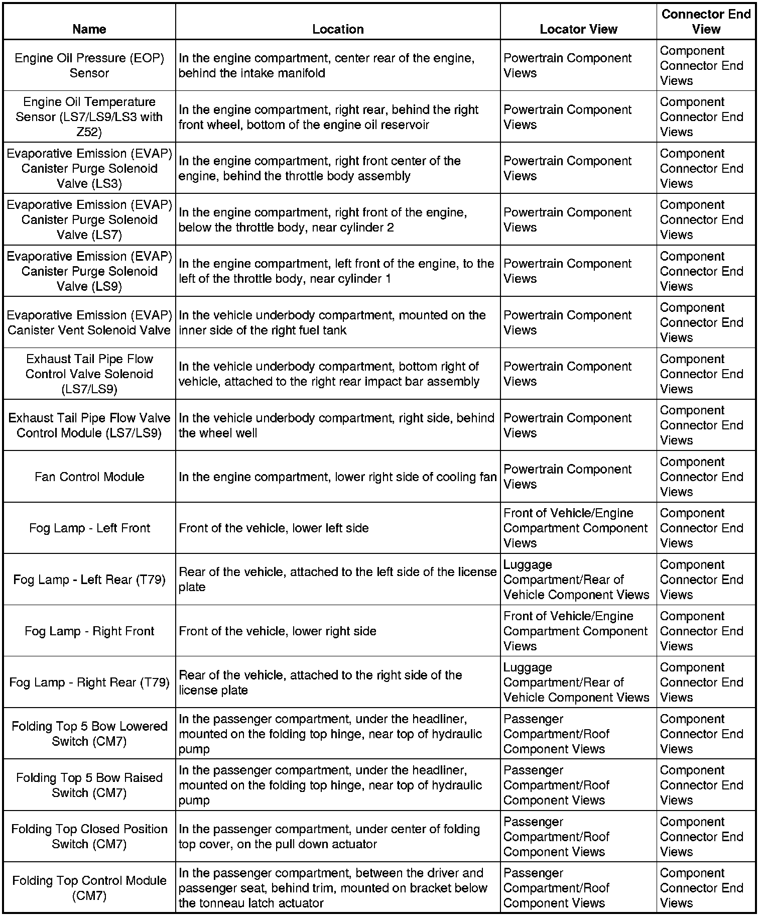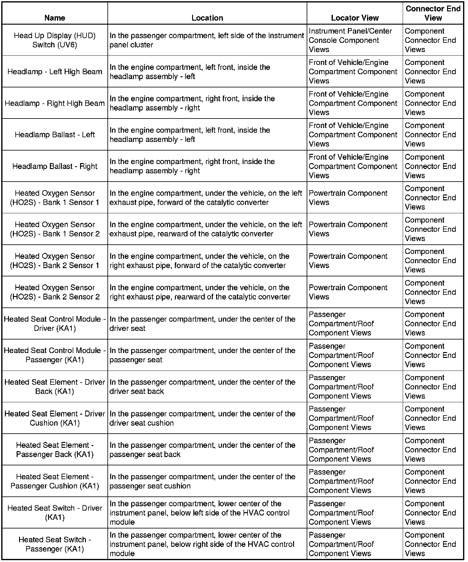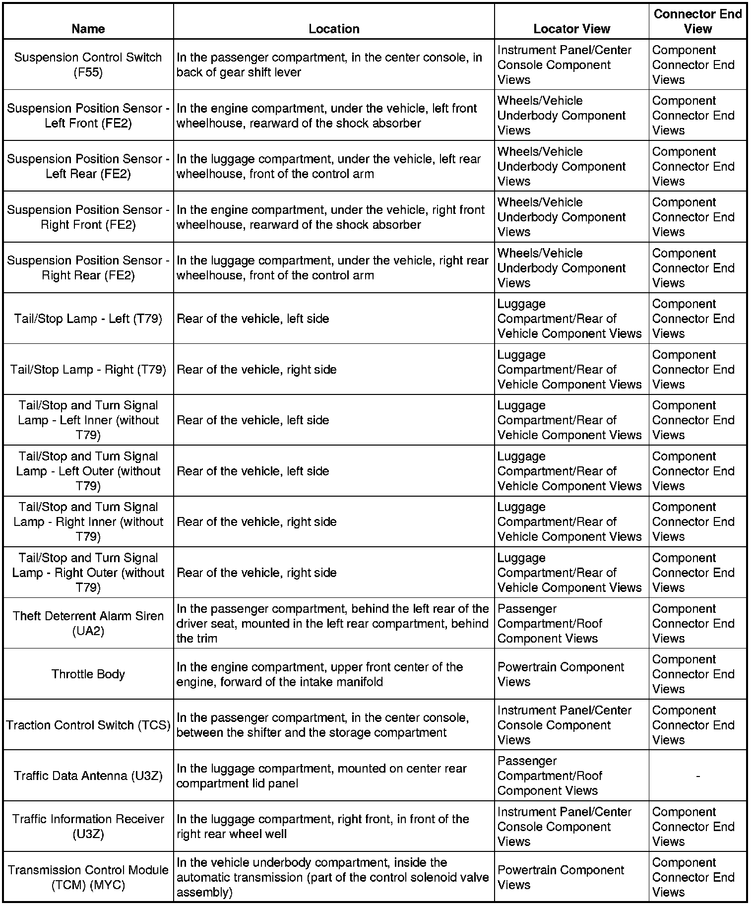 Master Electrical Component List