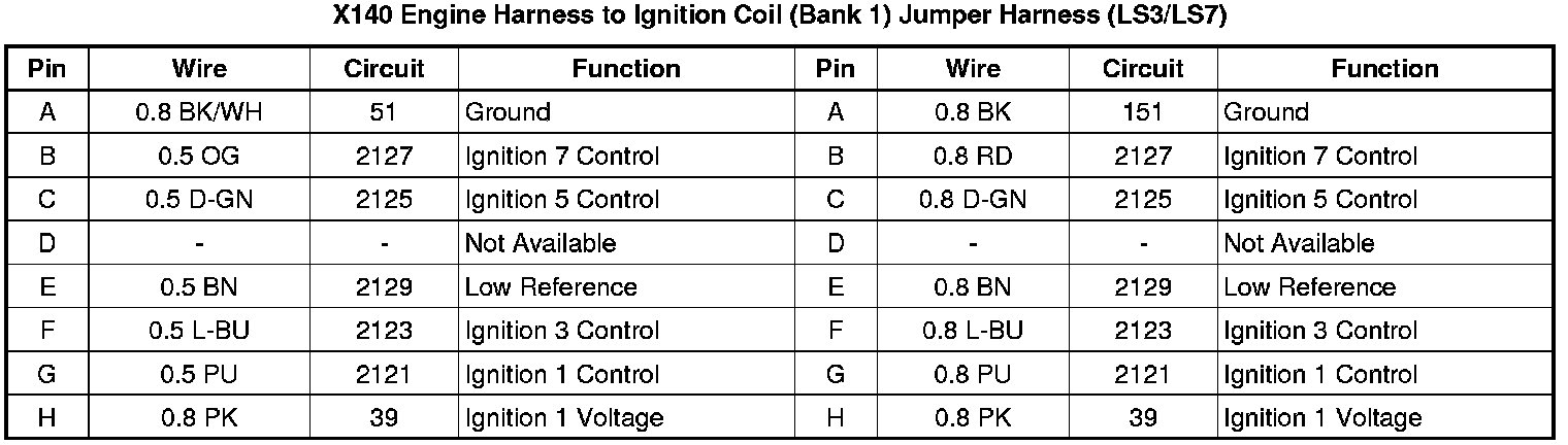 X140 Engine Harness to Ignition Coil (Bank 1) Jumper Harness (LS3/LS7)