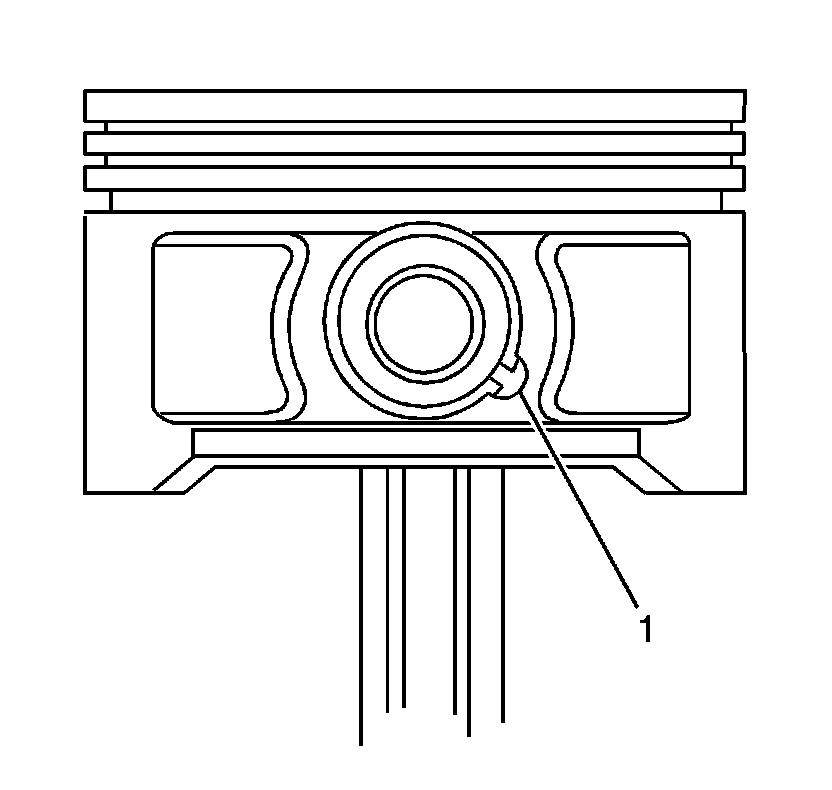 3. Rotate the piston pin retainers until the ring end gaps are positioned in the cutout area (1) of the pin bore.