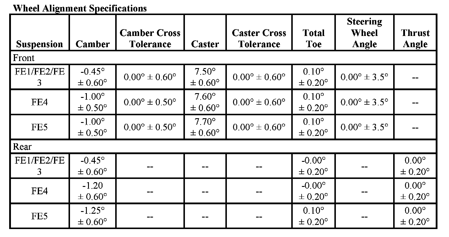 Wheel Alignment Specifications