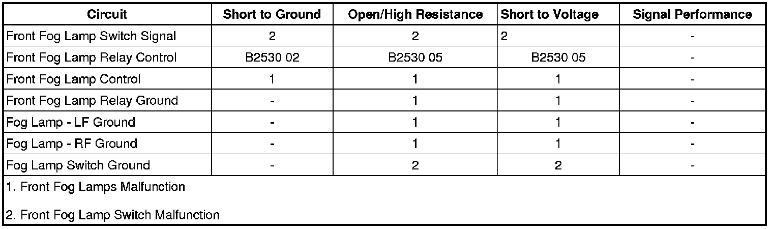 • If the front fog lamps do not activate, test the control circuit for an open/high resistance. If the circuit tests normal, replace the front fog lamp.