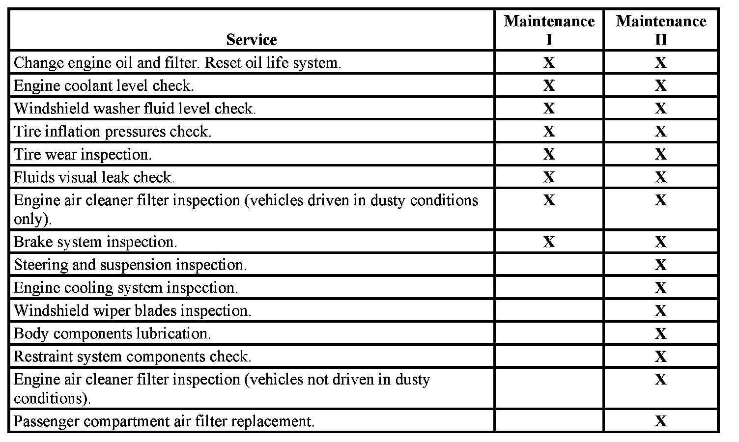 When the Change Engine Oil message displays, certain services, checks, and inspections are required. The services described for Maintenance I should be performed at every engine oil change. The services described for Maintenance II should be performed when: