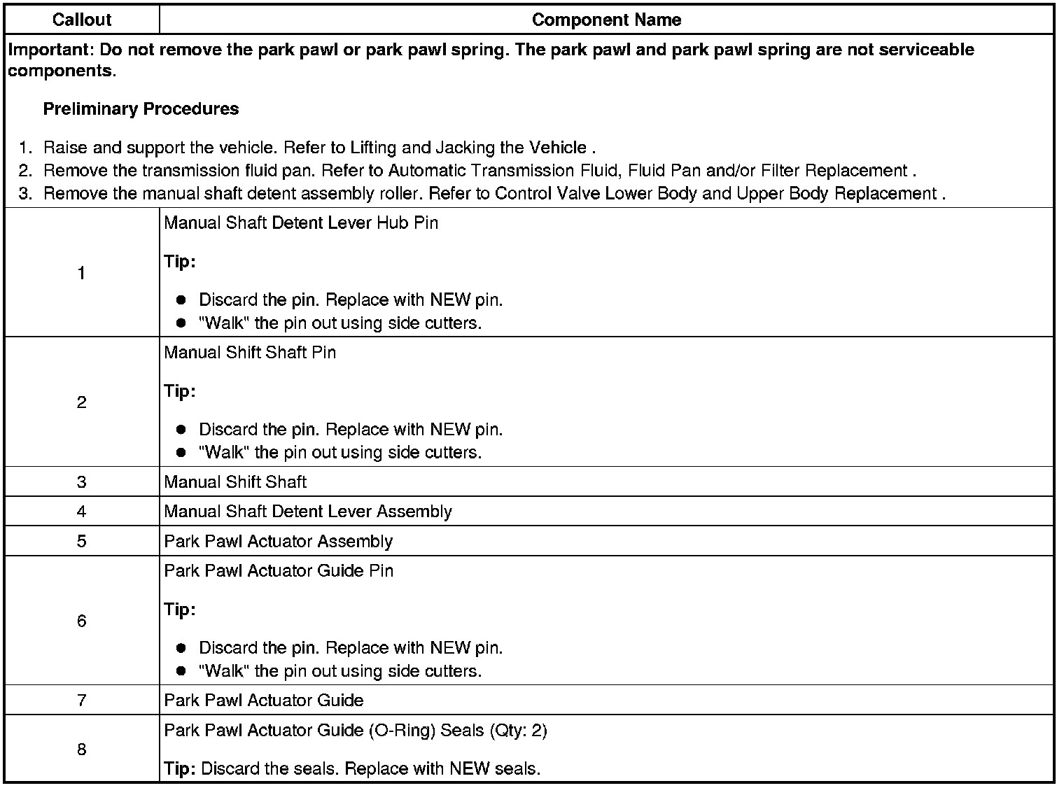 Parking Pawl: Service and Repair
