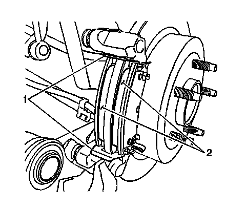 Caution: Support the brake caliper with heavy mechanic wire, or equivalent, whenever it is separated from its mount and the hydraulic flexible brake hose is still connected. Failure to support the caliper in this manner will cause the flexible brake hose to bear the weight of the caliper, which may cause damage to the brake hose and in turn may cause a brake fluid leak.