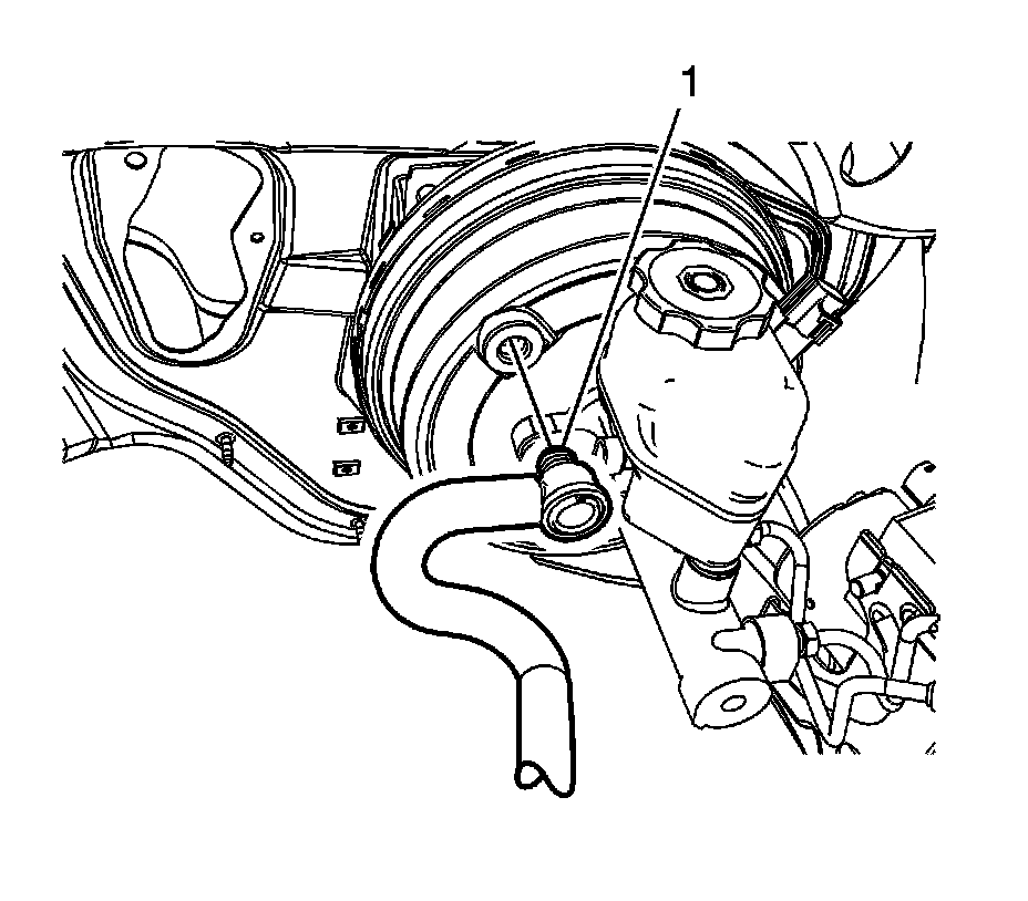 5. Disconnect the vacuum power brake booster check valve and hose assembly (1).