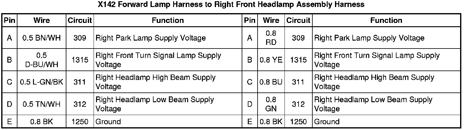 X142 Forward Lamp Harness to Right Front Headlamp Assembly Harness