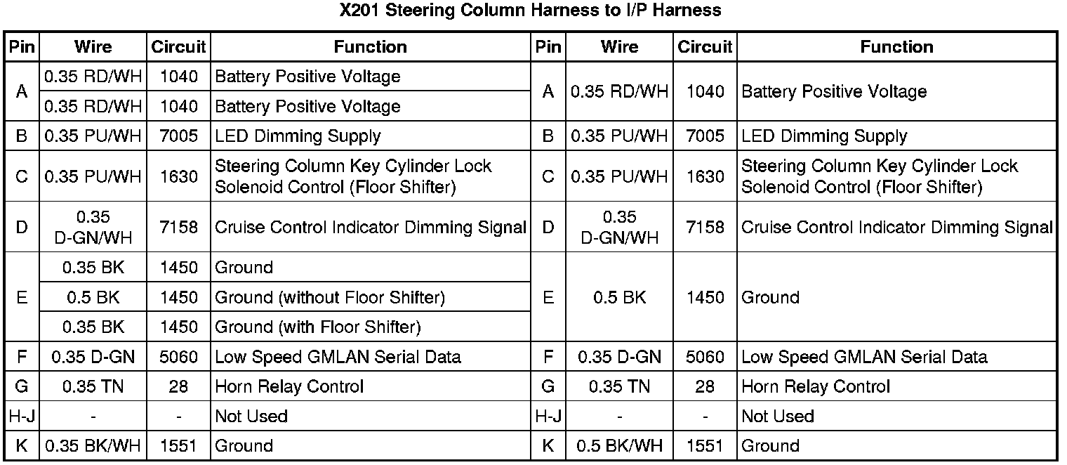 X201 Steering Column Harness to I/P Harness
