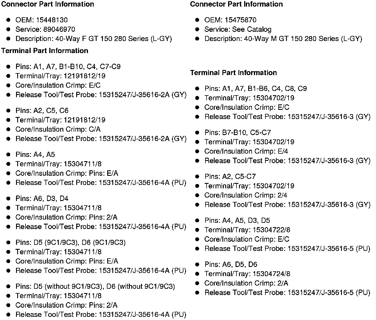 Connector End Views By Number