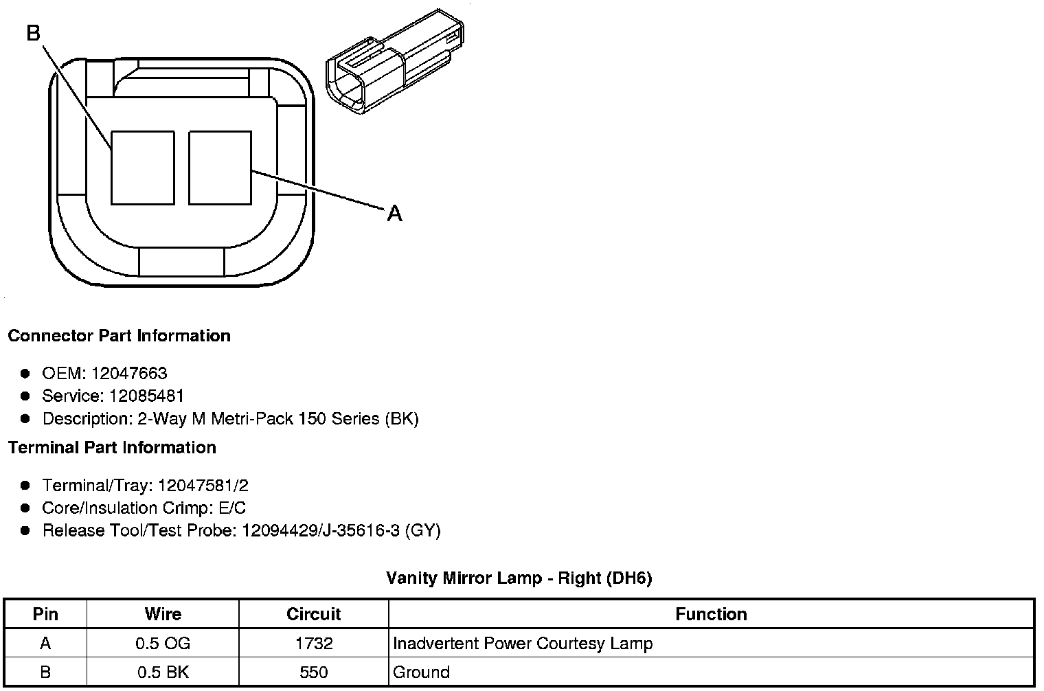 Vanity Mirror Lamp - Right (DH6)