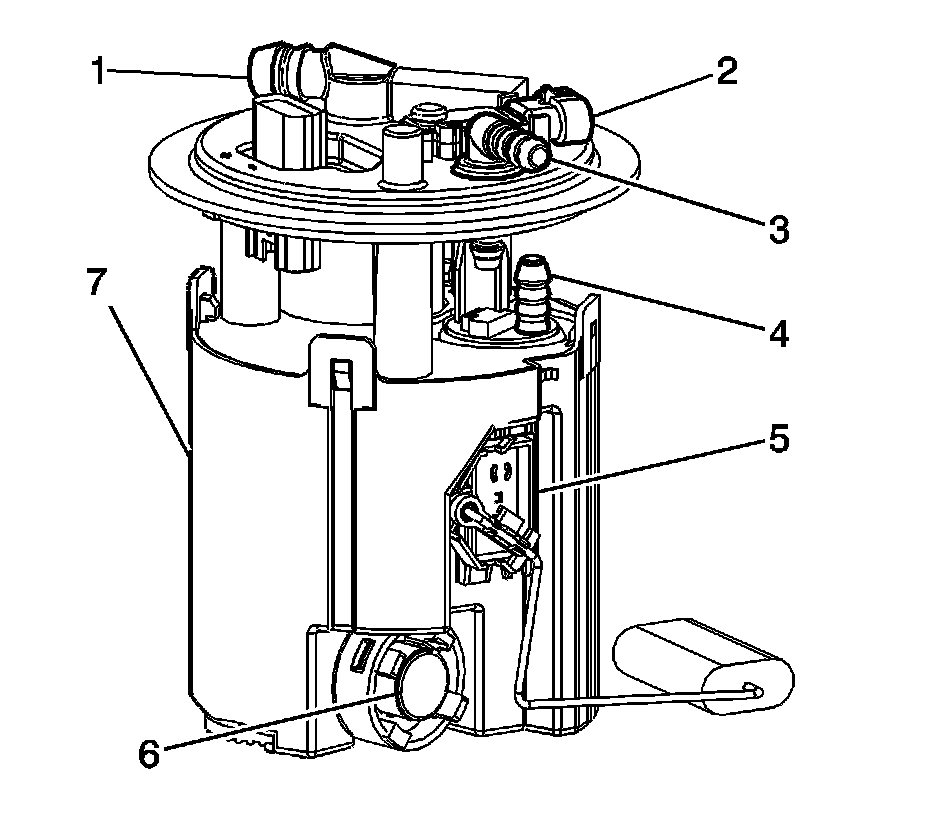 The fuel level sensor consists of a float, a wire float arm, and a ceramic resistor card. The position of the float arm indicates the fuel level. The fuel level sensor contains a variable resistor which changes resistance in correspondence with the amount of fuel in the fuel tank. The engine control module (ECM) sends the fuel level information via the class 2 circuit to the instrument panel cluster (IPC). This information is used for the instrument panel (I/P) fuel gage and the low fuel warning indicator, if applicable. The ECM also monitors the fuel level input for various diagnostics.