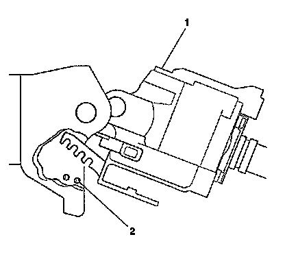 3. Pull the tilt arm in order to disengage the steering wheel lock shoes from the dowel pins (2) in the steering column support assembly.