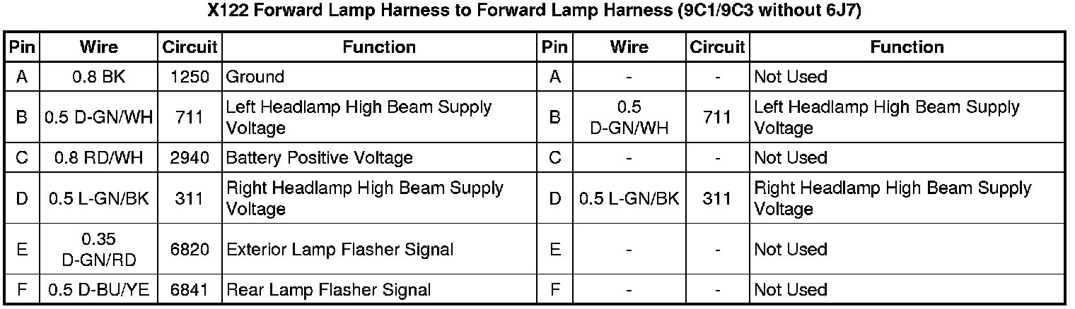 X122 Forward Lamp Harness to Forward Lamp Harness (9C1/9C3 without 6J7)