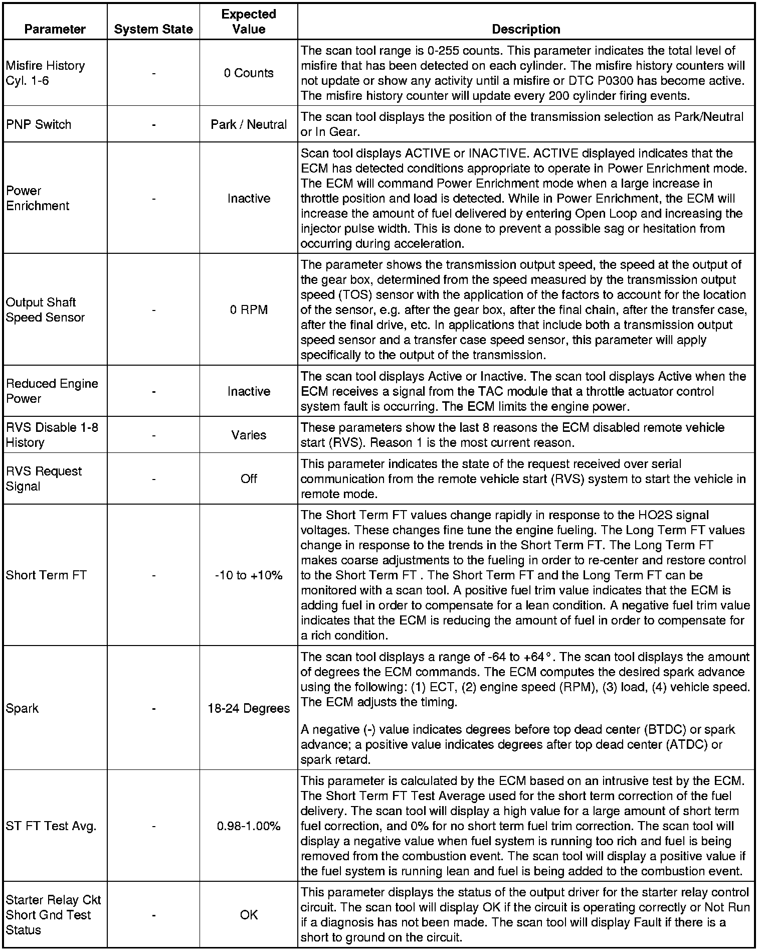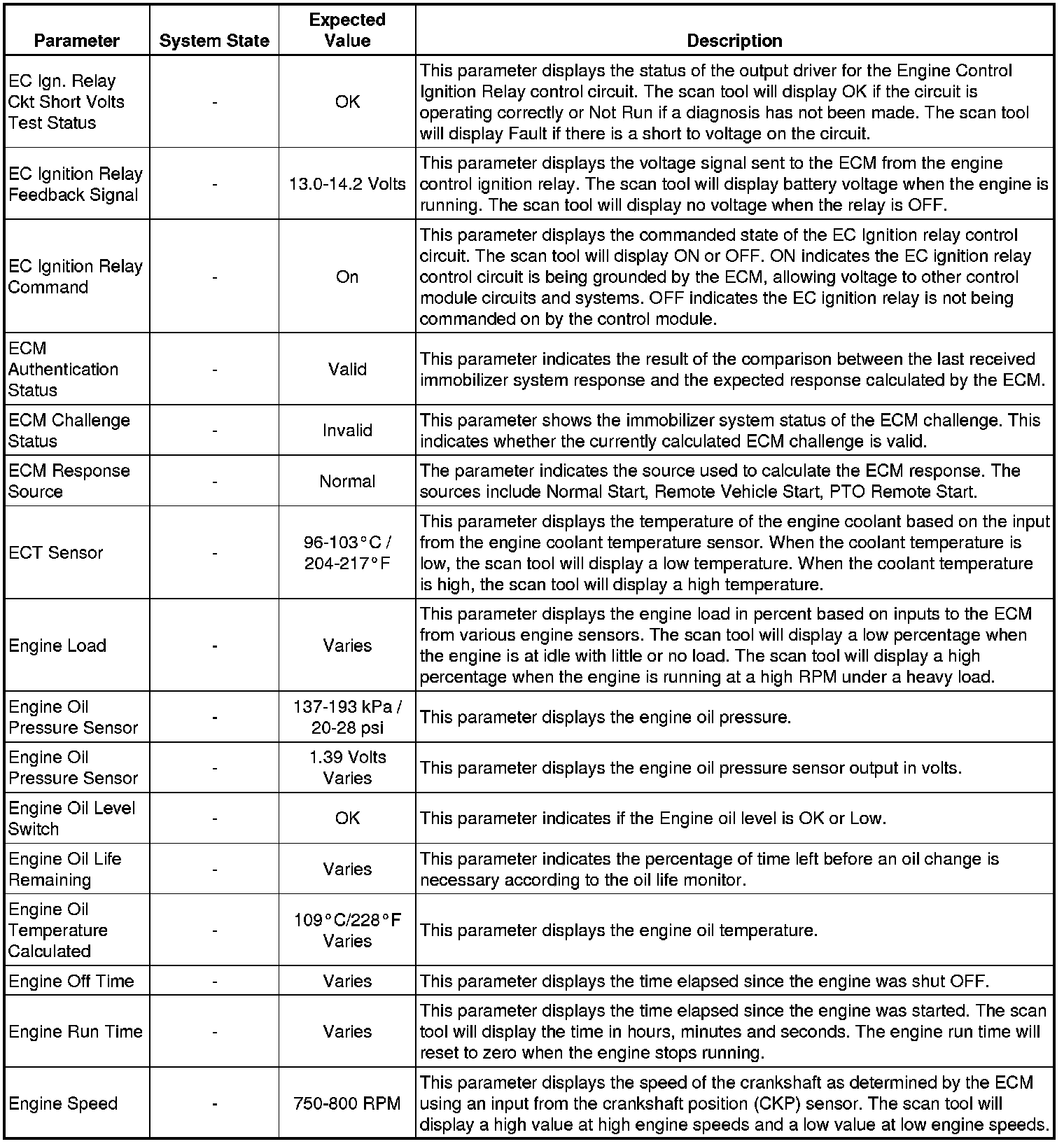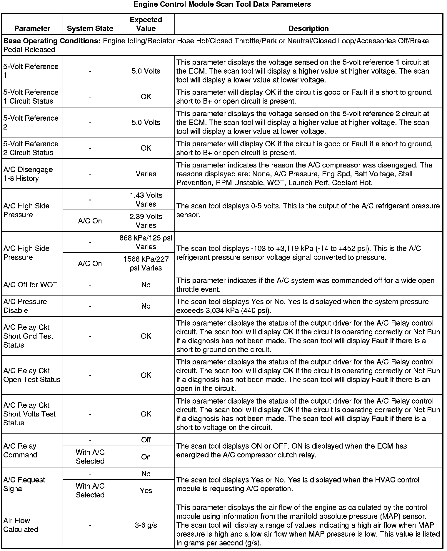 The Engine Control Module Scan Tool Data List contains all engine-related parameters that are available on the scan tool. The list is arranged in alphabetical order. A given parameter may appear in any one of the data lists, and in some cases may appear more than once, or in more than one data list in order to group certain related parameters together.