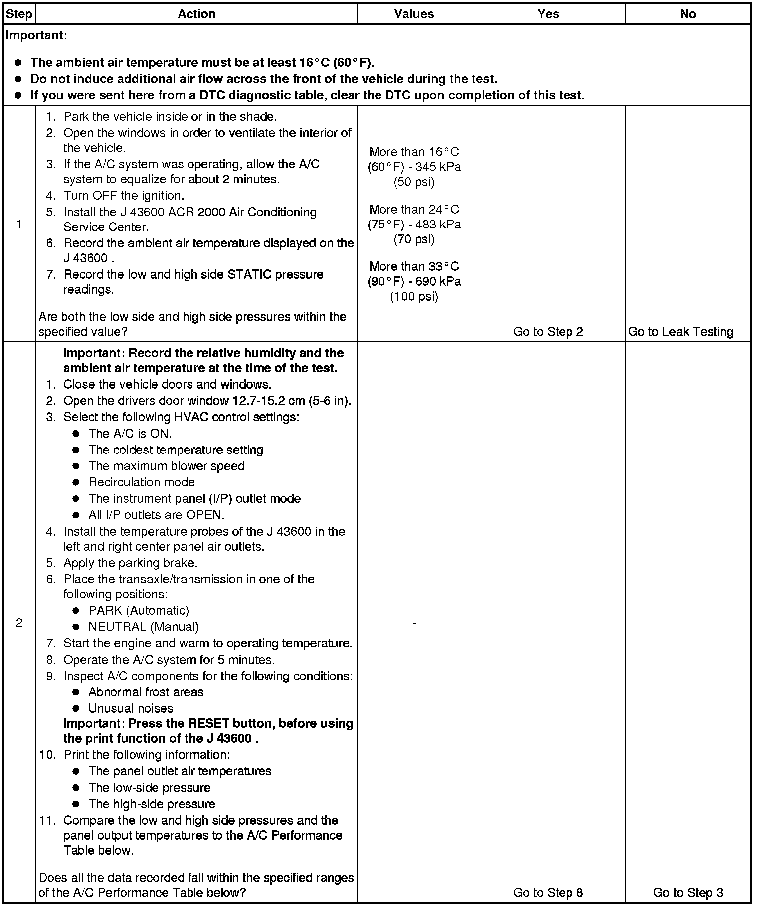 1. This step determines if the A/C system has at least the minimum refrigerant charge required to operate the system without damage.