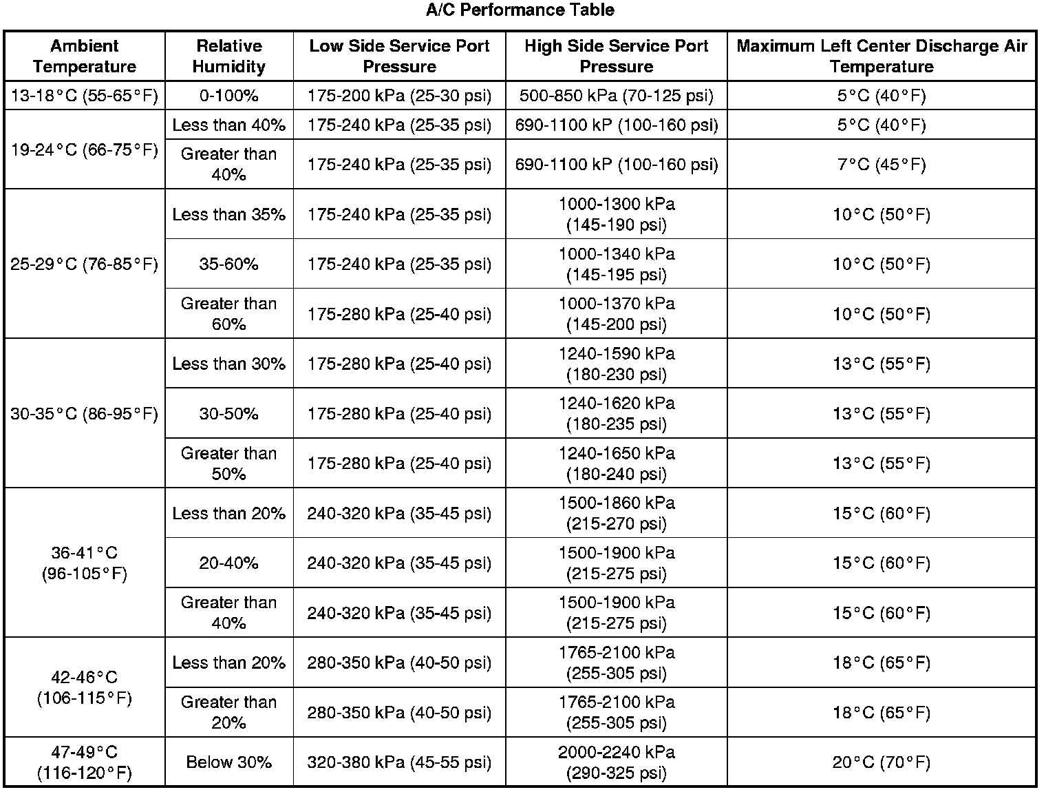 Air Conditioning (A/C) System Performance Test