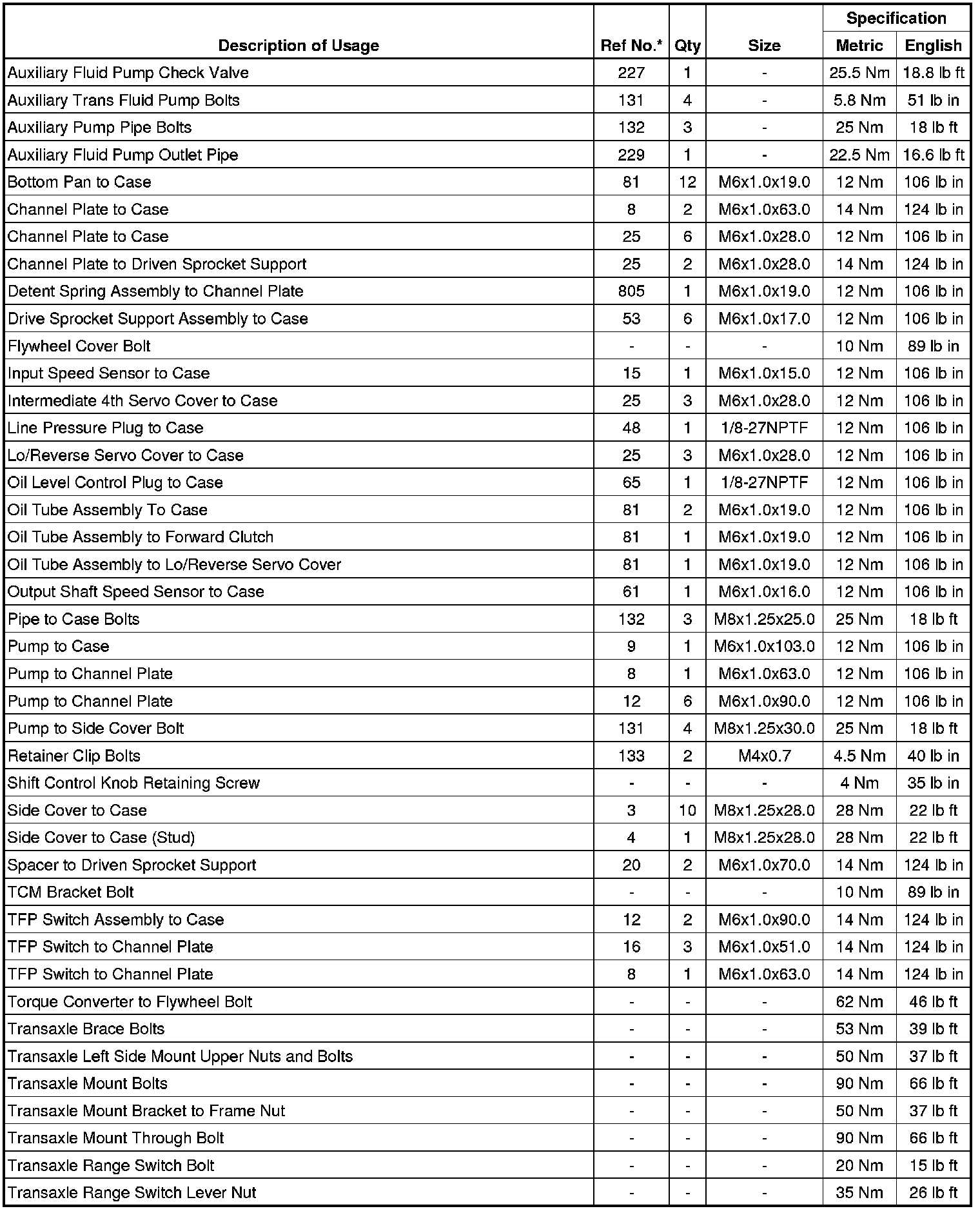 Fastener Tightening Specifications