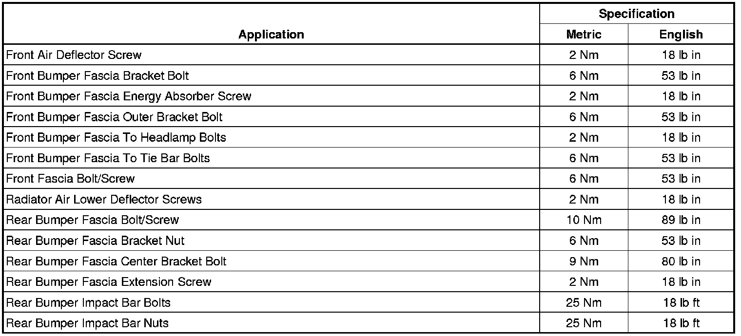 Bumper: Specifications