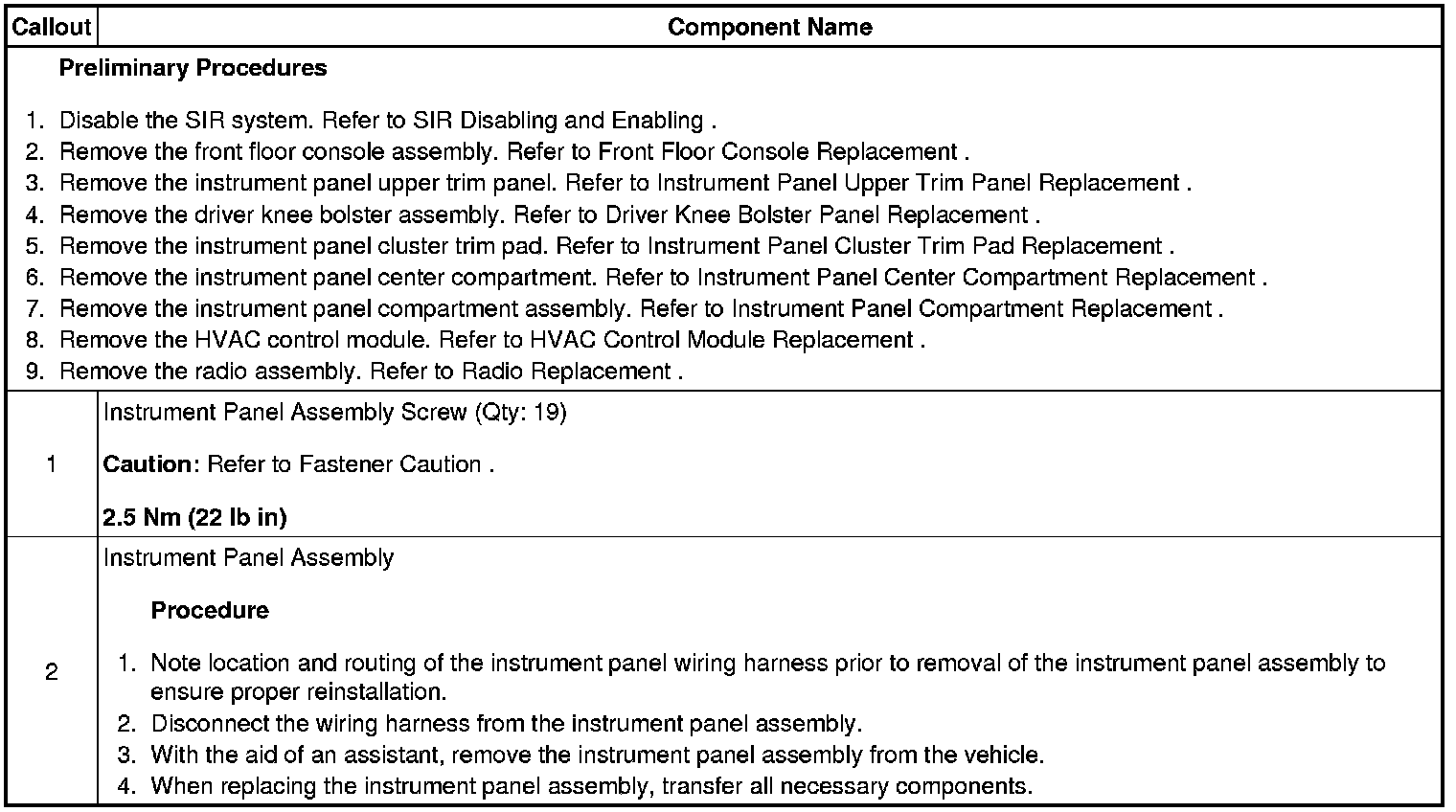 Instrument Panel Assembly Replacement