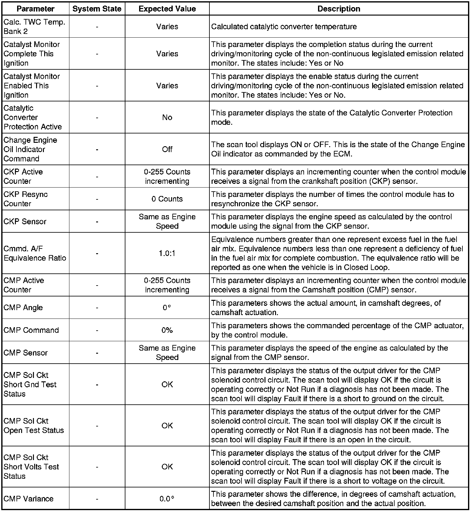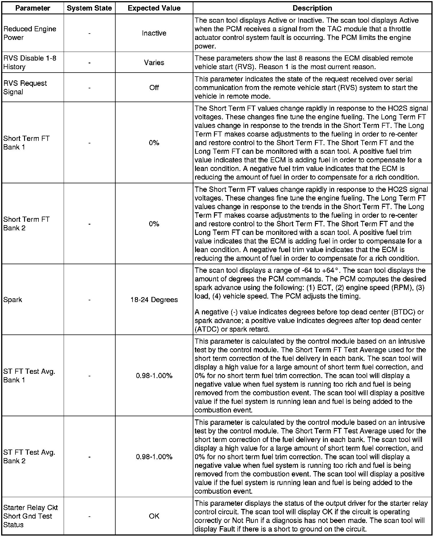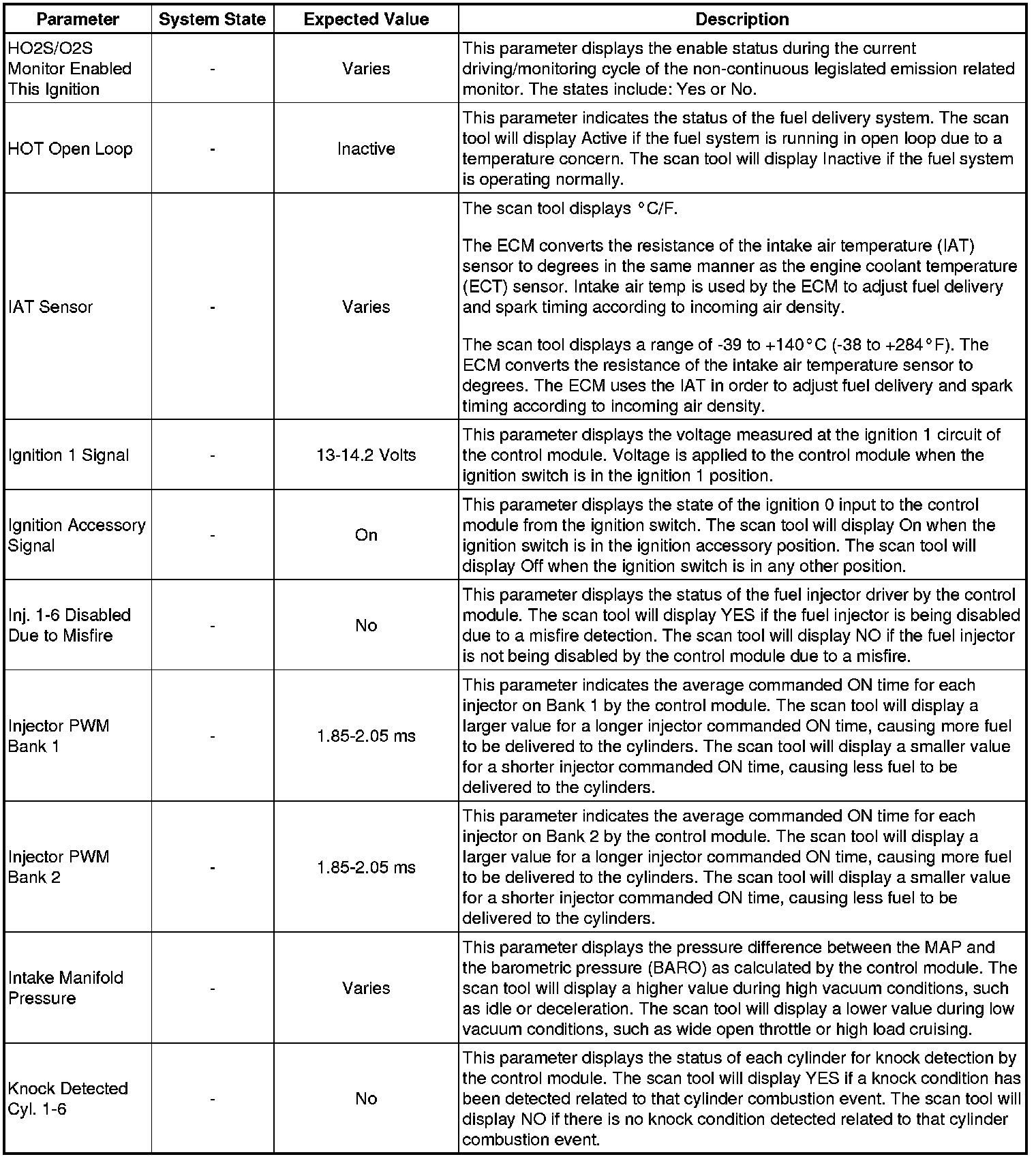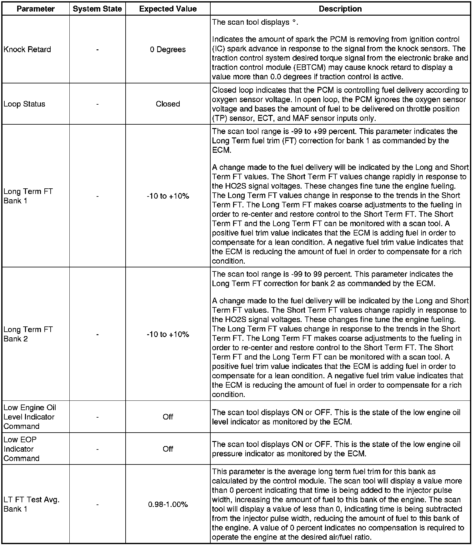 The Engine Scan Tool Data List represents values that would be seen on a normally running engine under the conditions listed below.