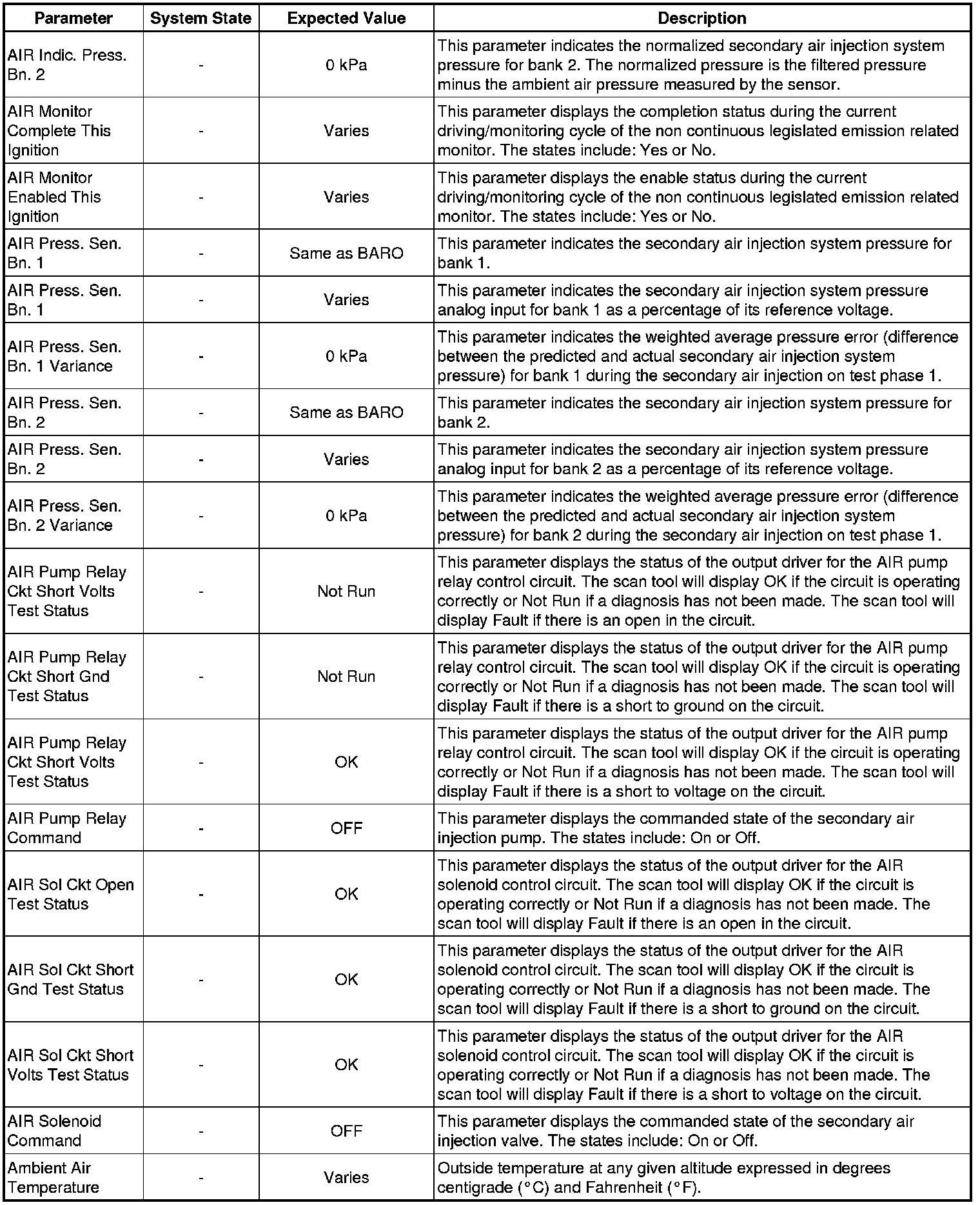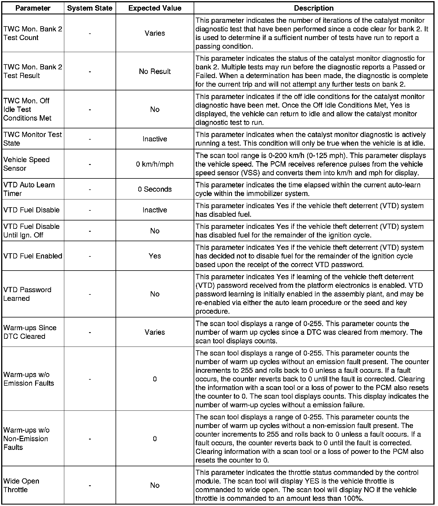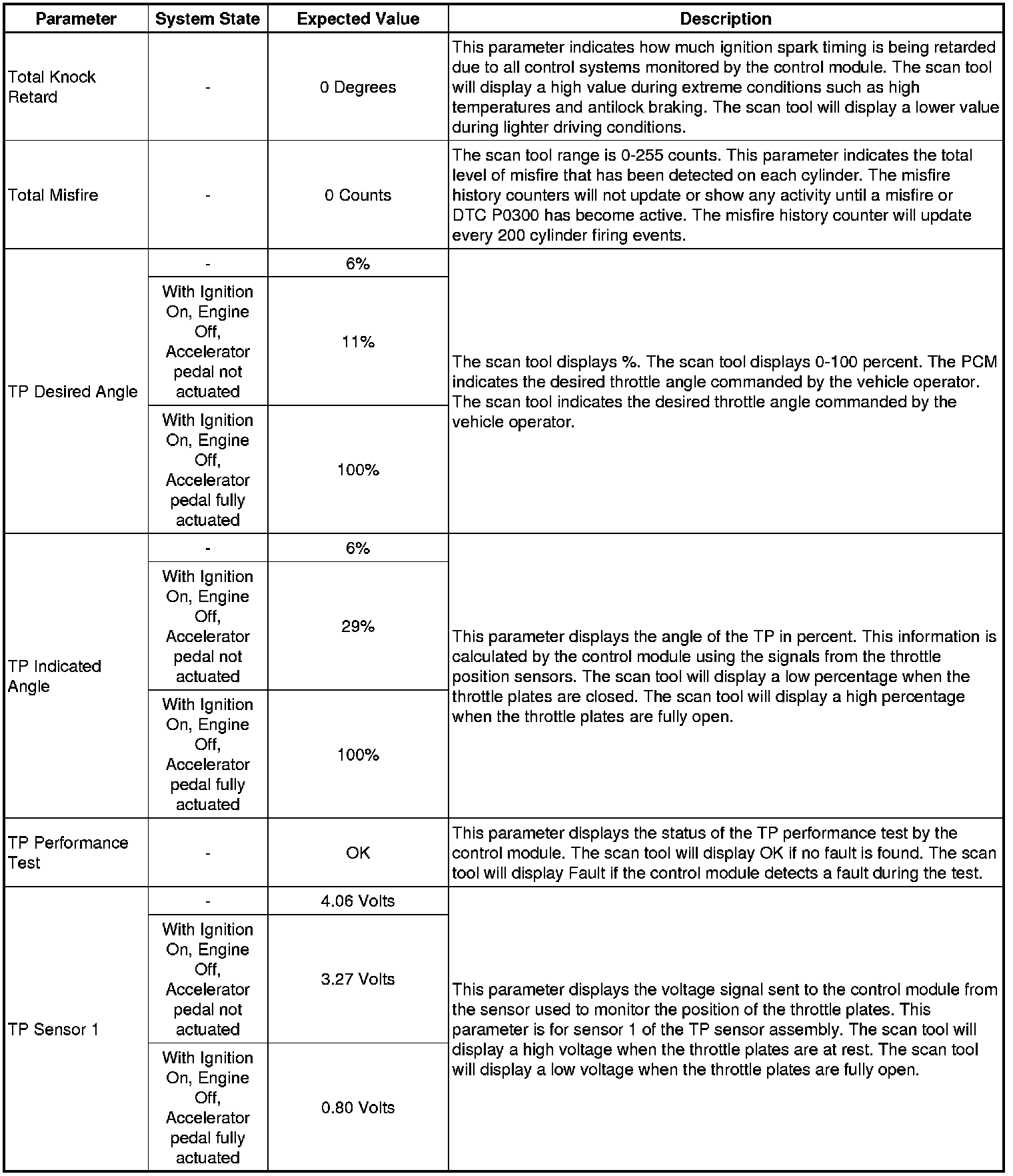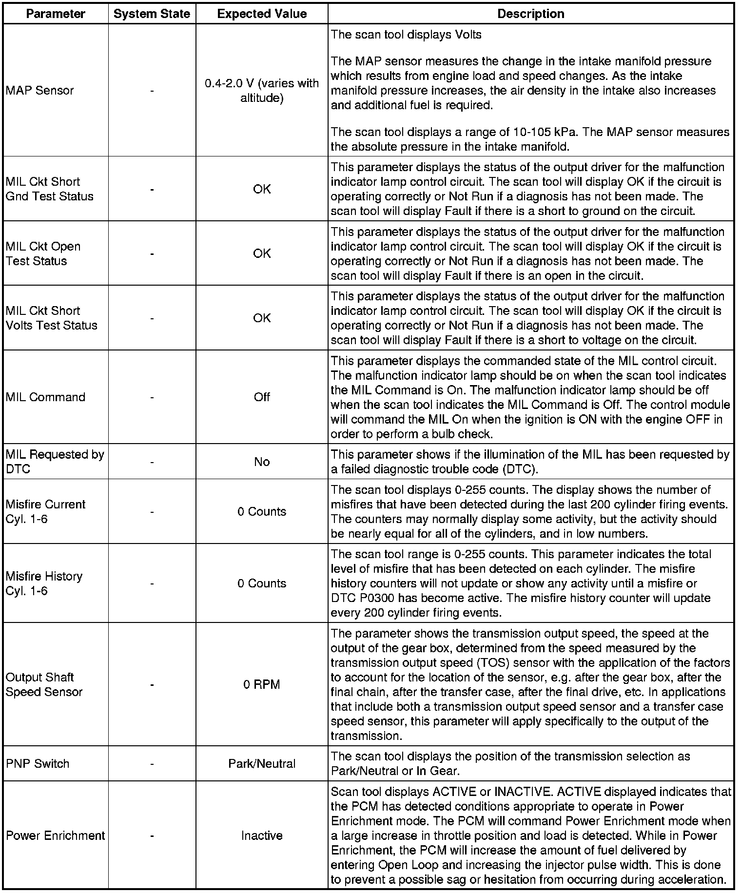 The Engine Scan Tool Data List represents values that would be seen on a normally running engine under the conditions listed below.