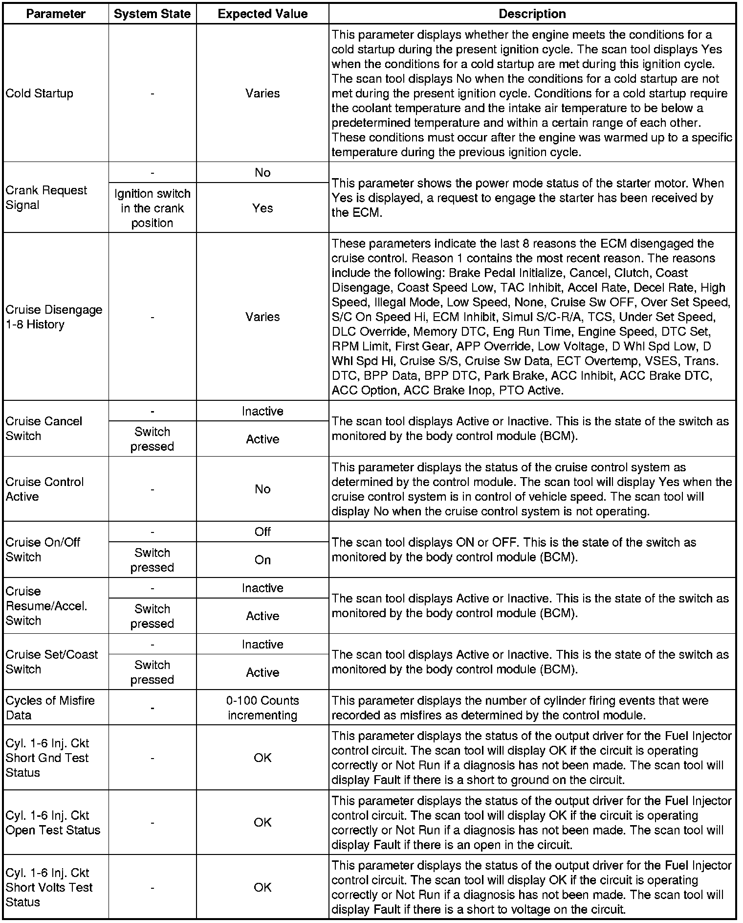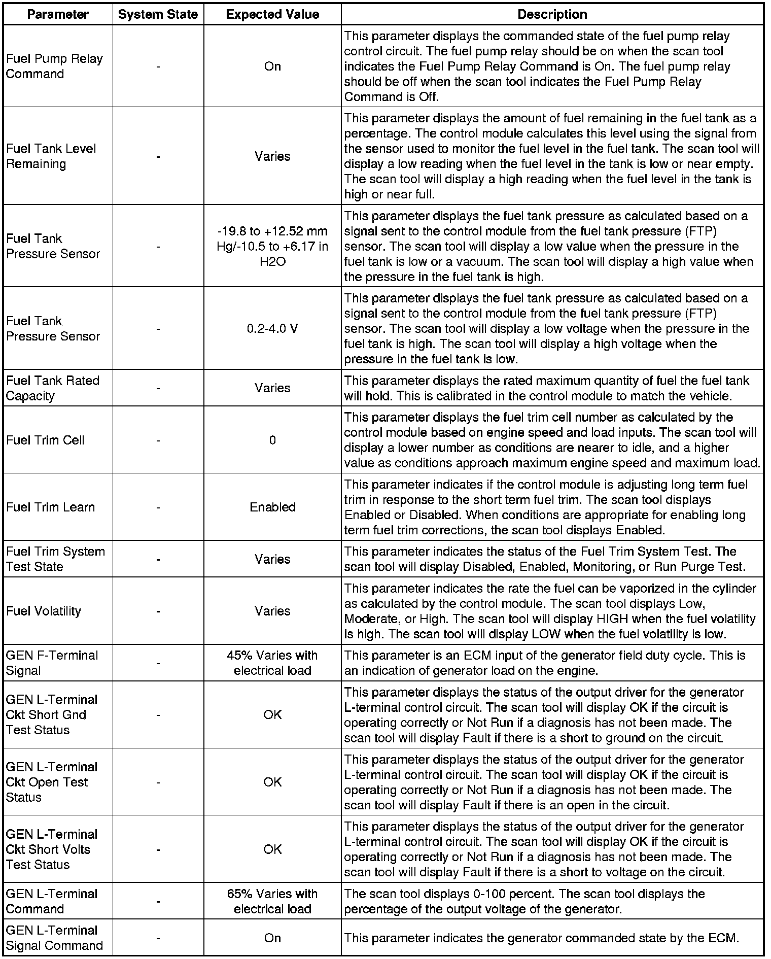 The Engine Control Module (ECM) Scan Tool Data List contains all ECM-related parameters that are available on the scan tool. The list is arranged in alphabetical order. A given parameter may appear in any one of the data lists, and in some cases may appear more than once, or in more than one data list in order to group certain related parameters together.