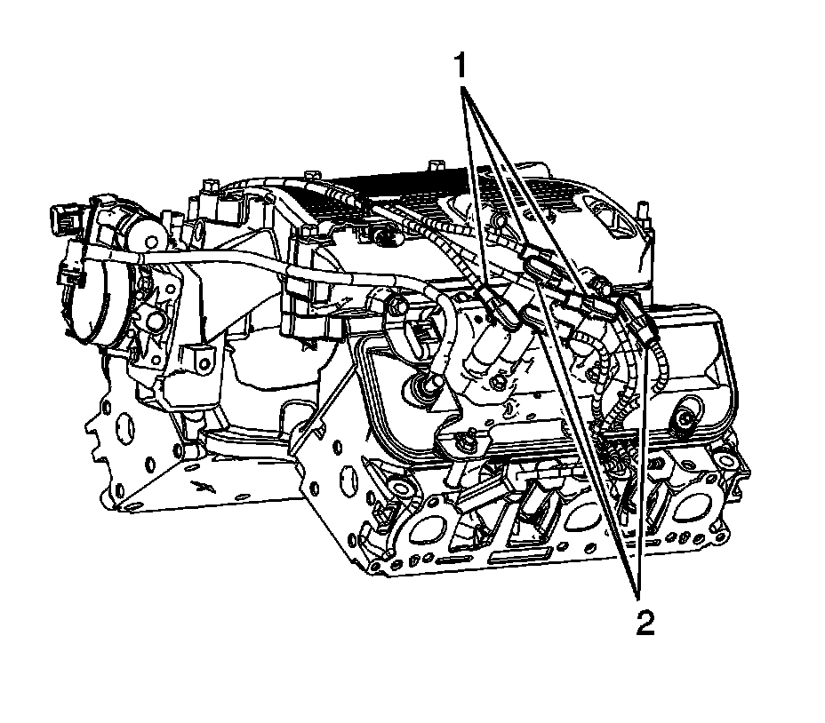 8. Connect the engine wiring harness electrical connector (2) to the ignition coil.