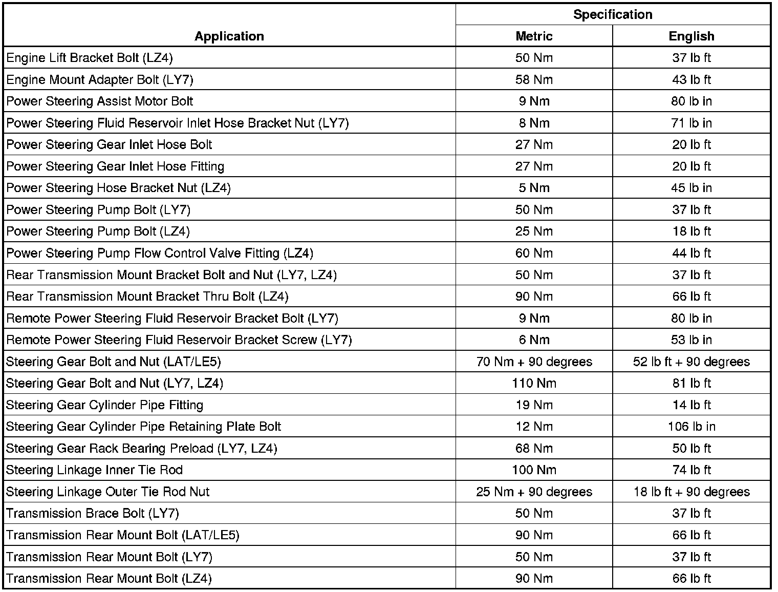 Fastener Tightening Specifications