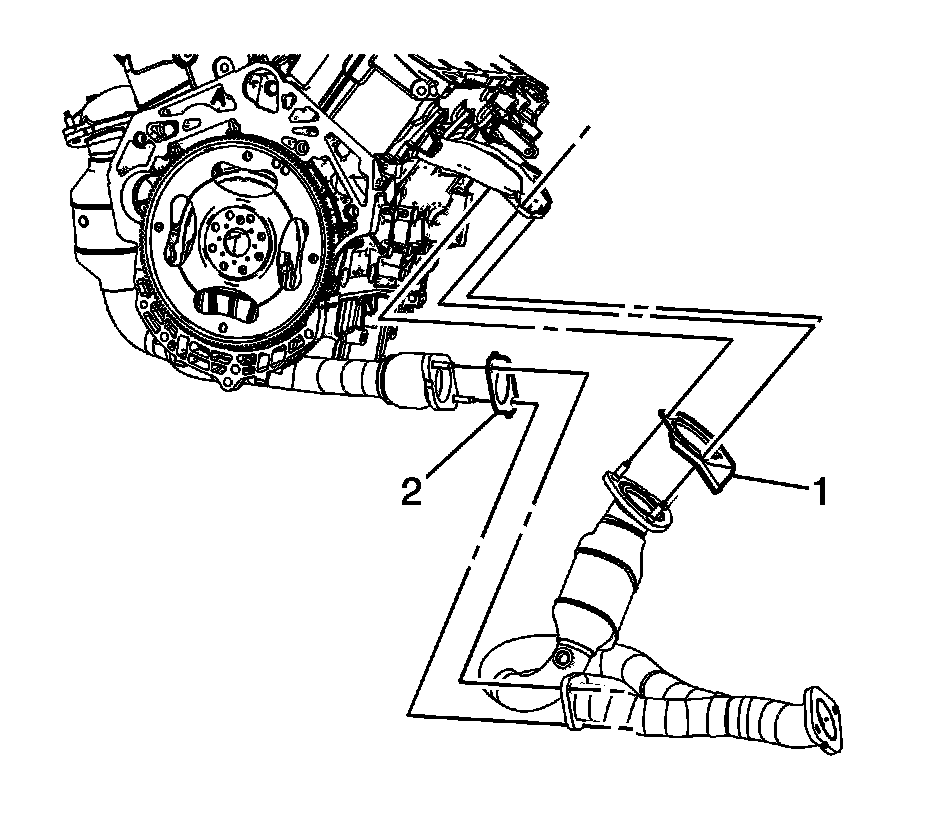 8. Remove and discard the left catalytic converter to right catalytic converter gasket (2).
