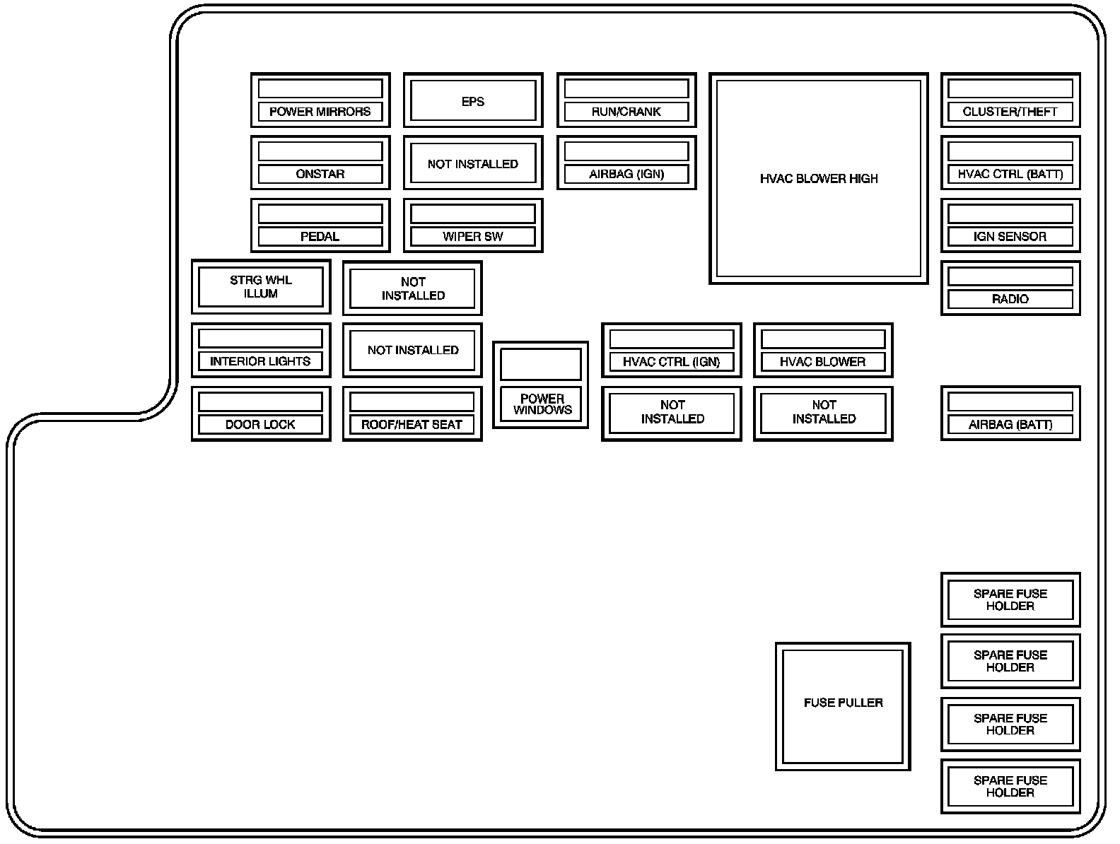 The instrument panel fuse block is located on the instrument panel near the floor on the passenger side of the vehicle.