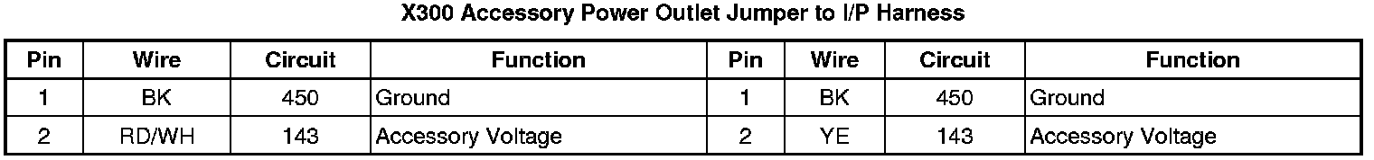X300 Accessory Power Outlet Jumper to I/P Harness