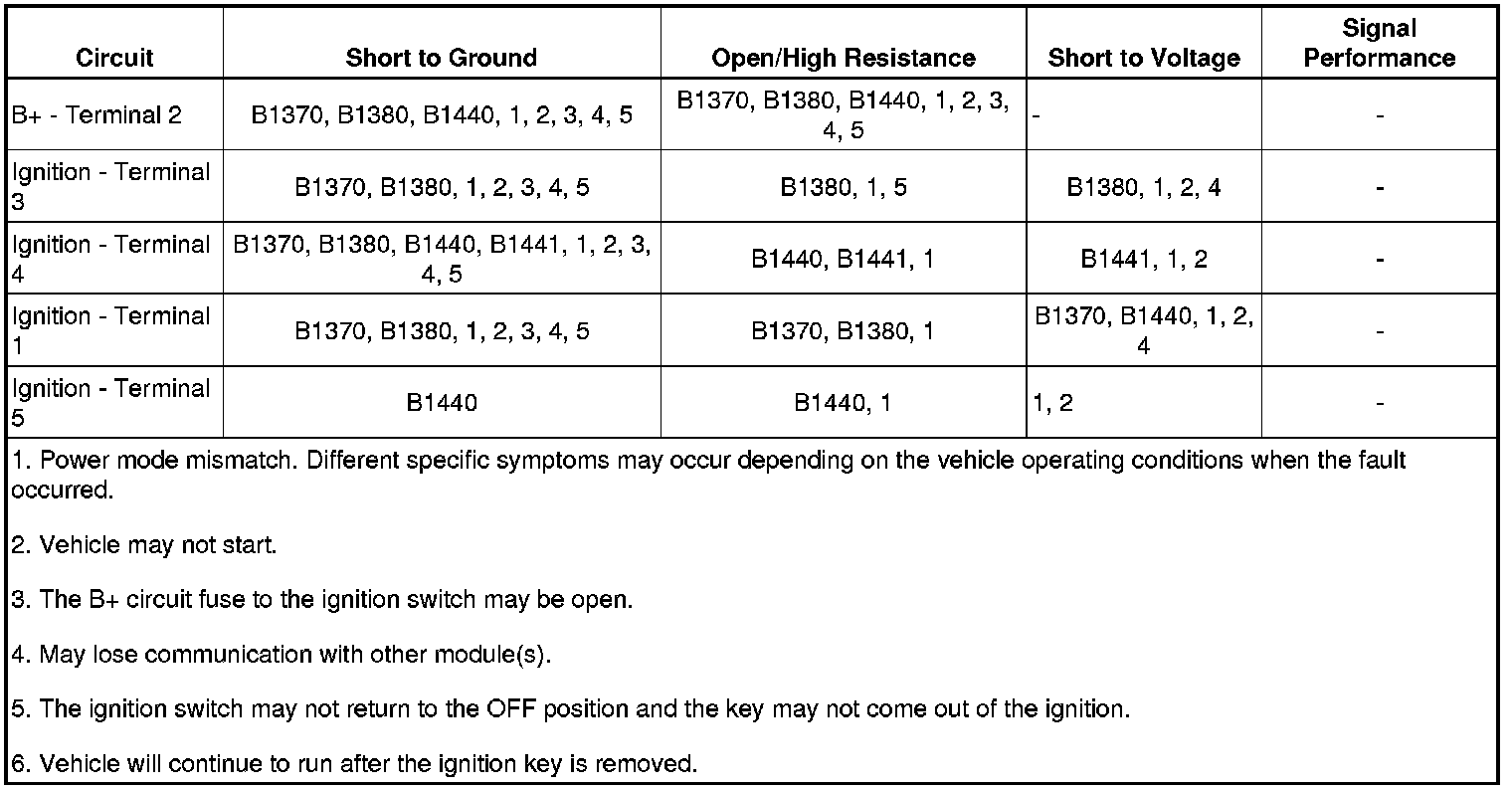 * Ignition, accessory, or off/run/crank circuit shorted to ground.