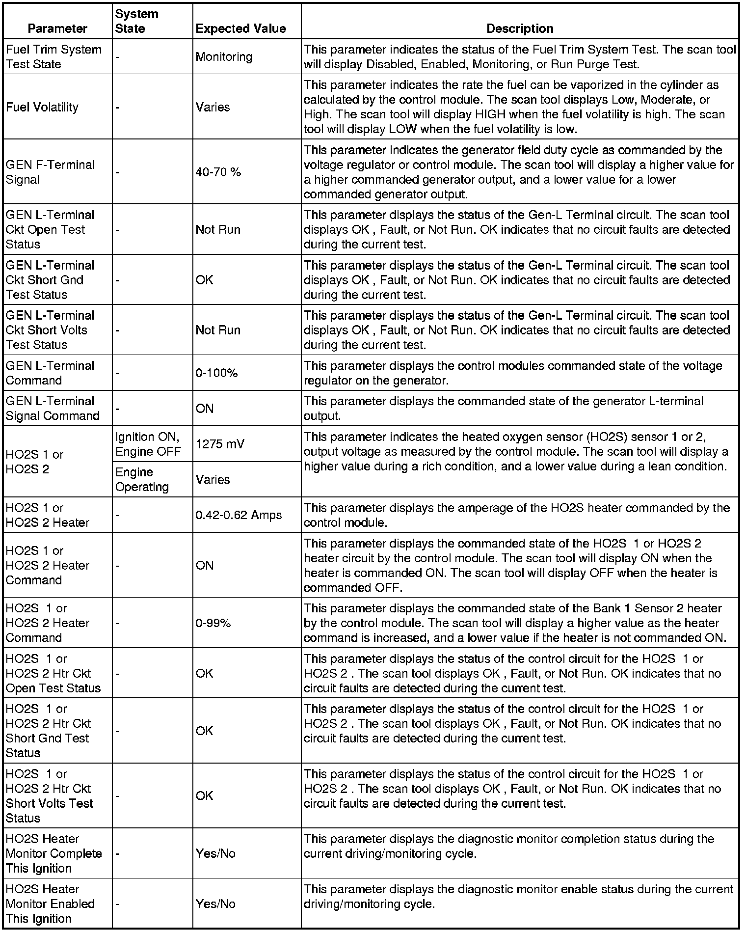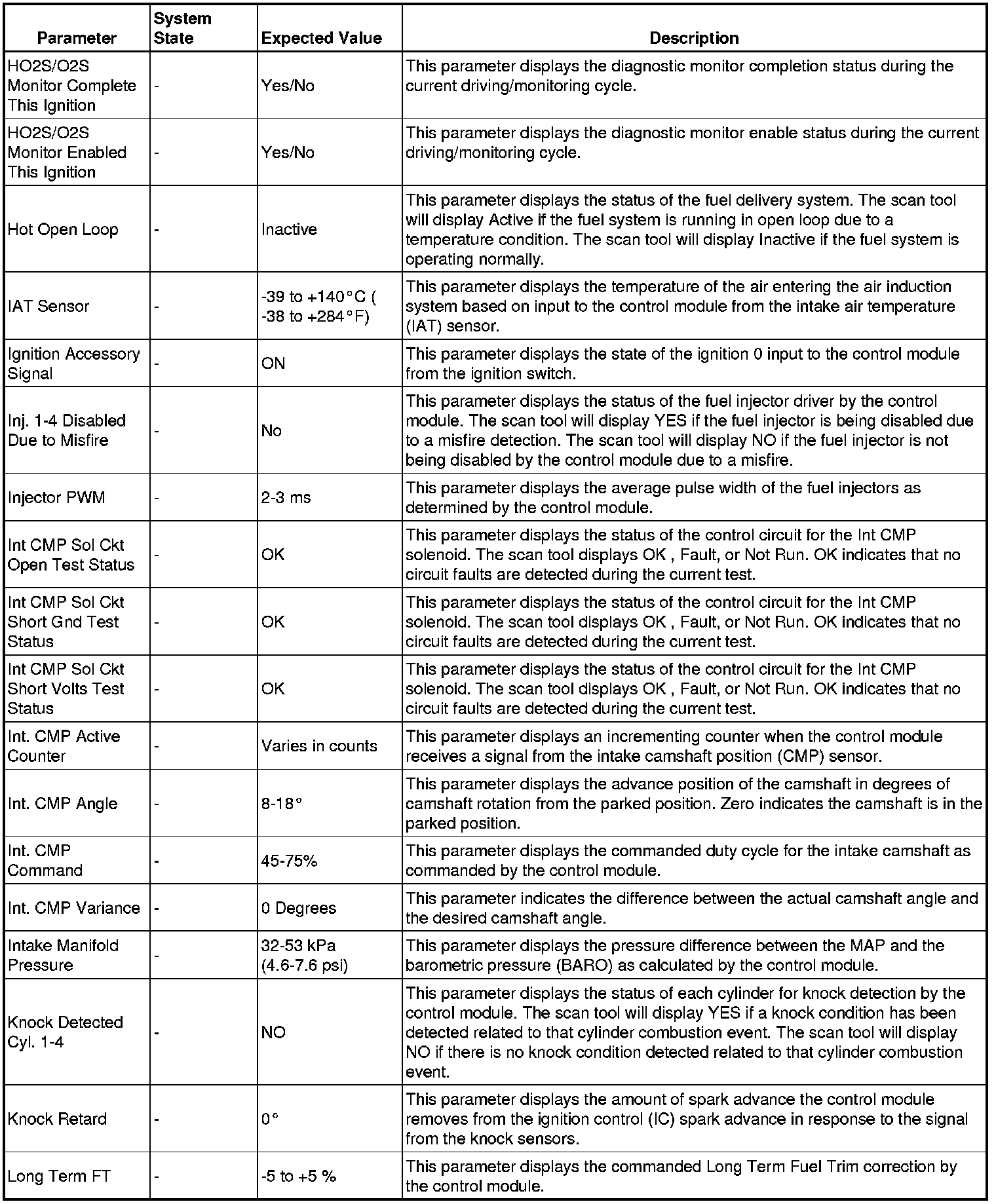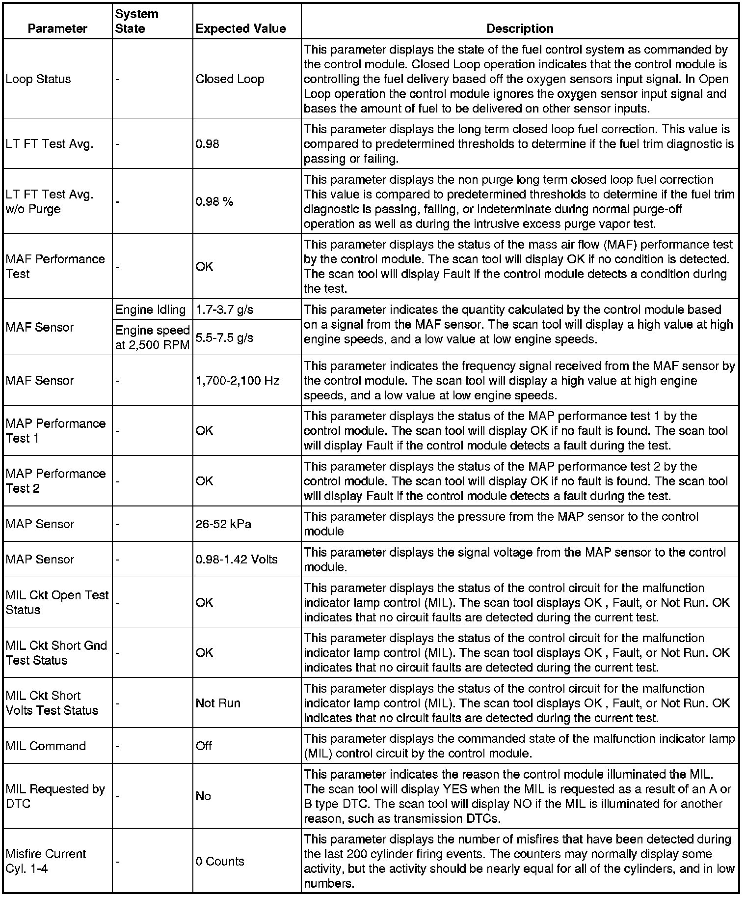The scan tool values from a properly running engine may be used for comparison with the engine you are diagnosing. The Engine Scan Tool Data List represents values that would be seen on a normally running engine.