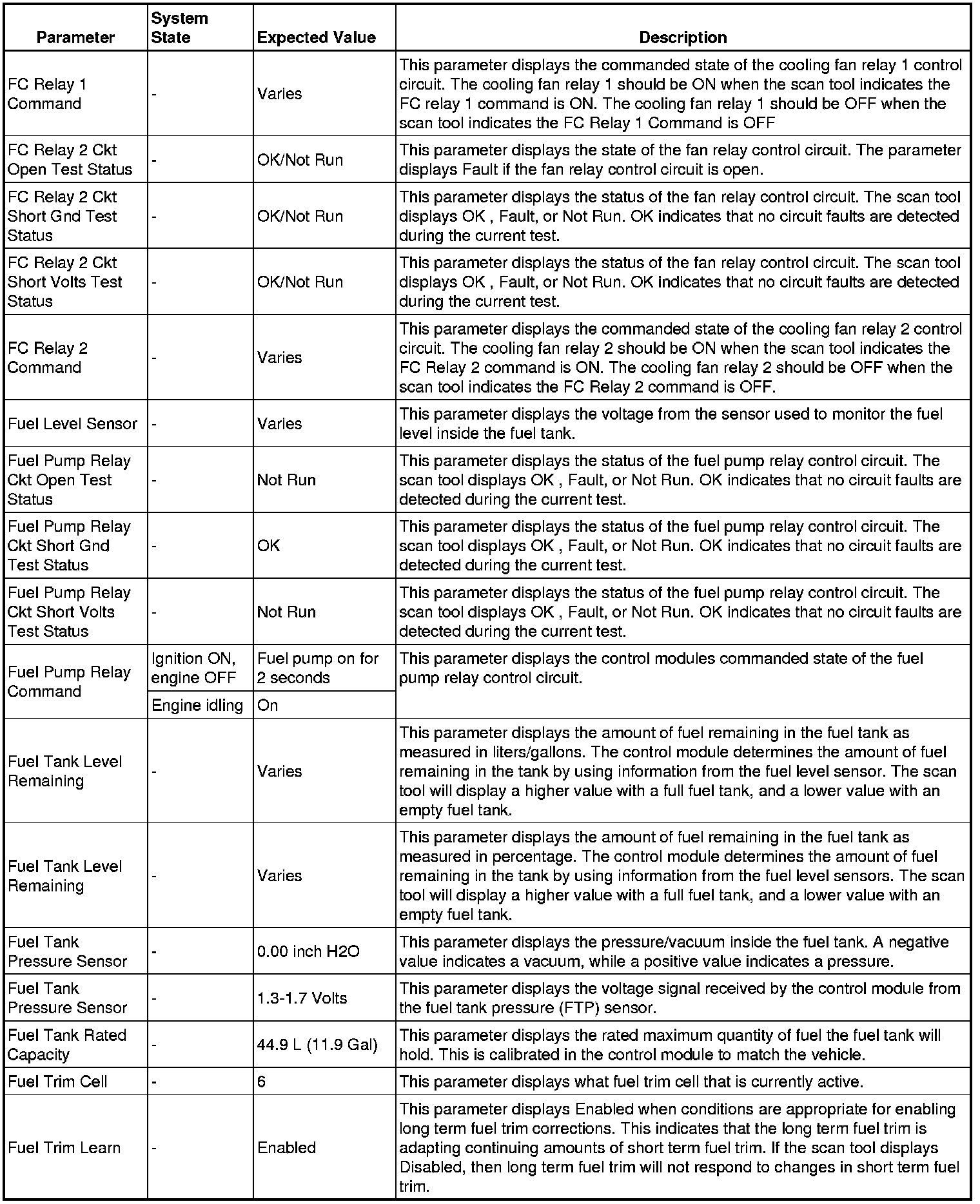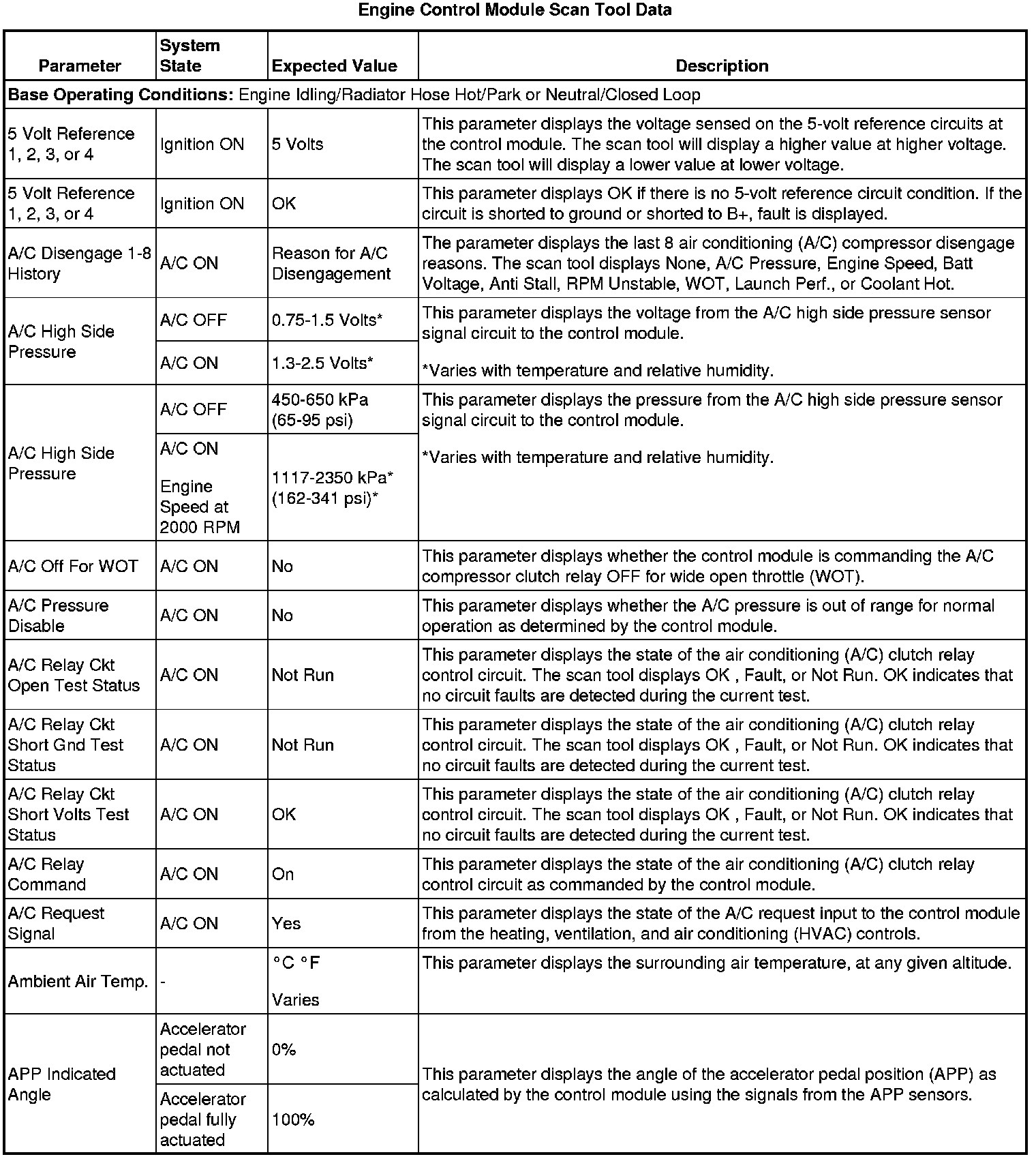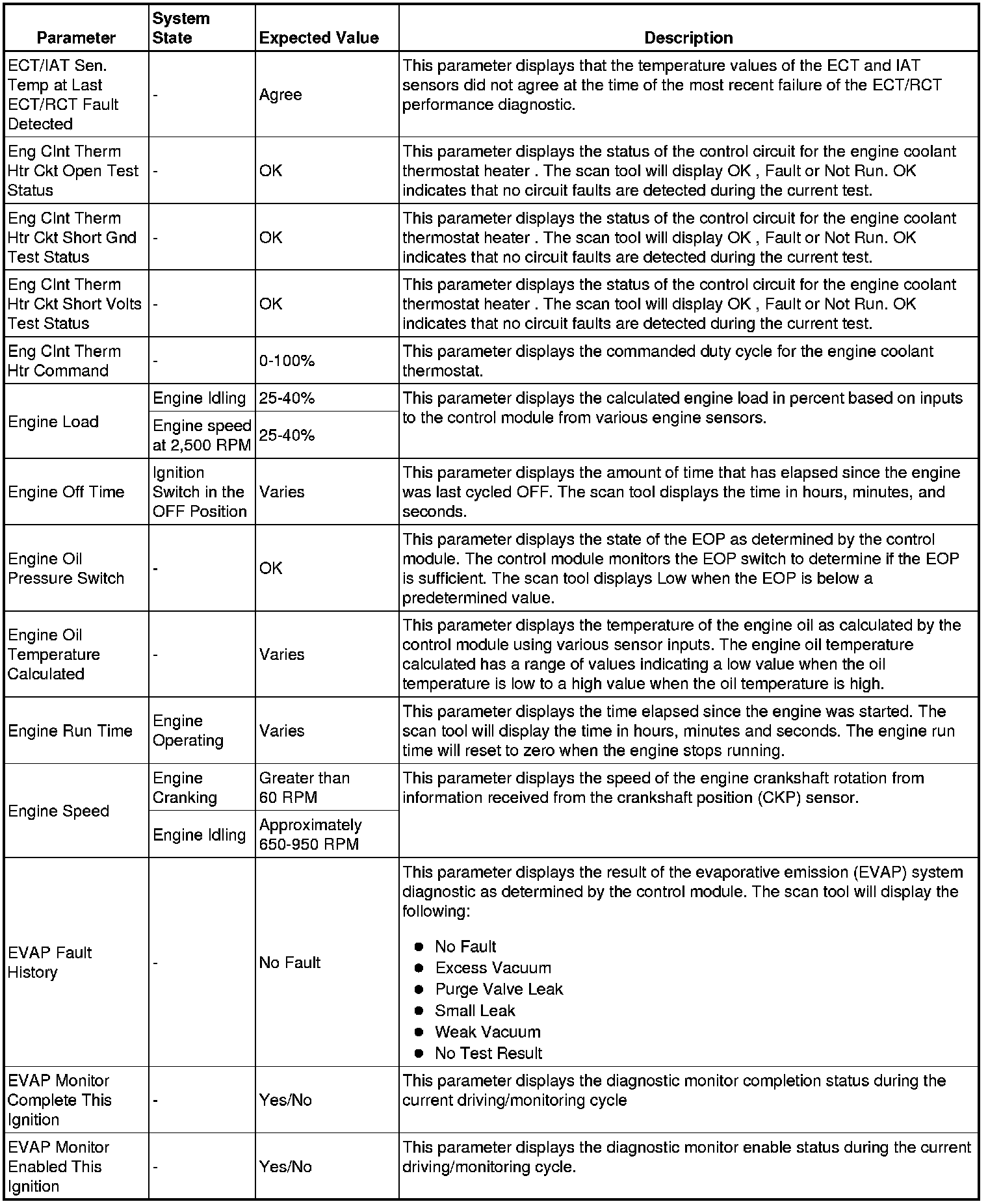 The scan tool values from a properly running engine may be used for comparison with the engine you are diagnosing. The Engine Scan Tool Data List represents values that would be seen on a normally running engine.