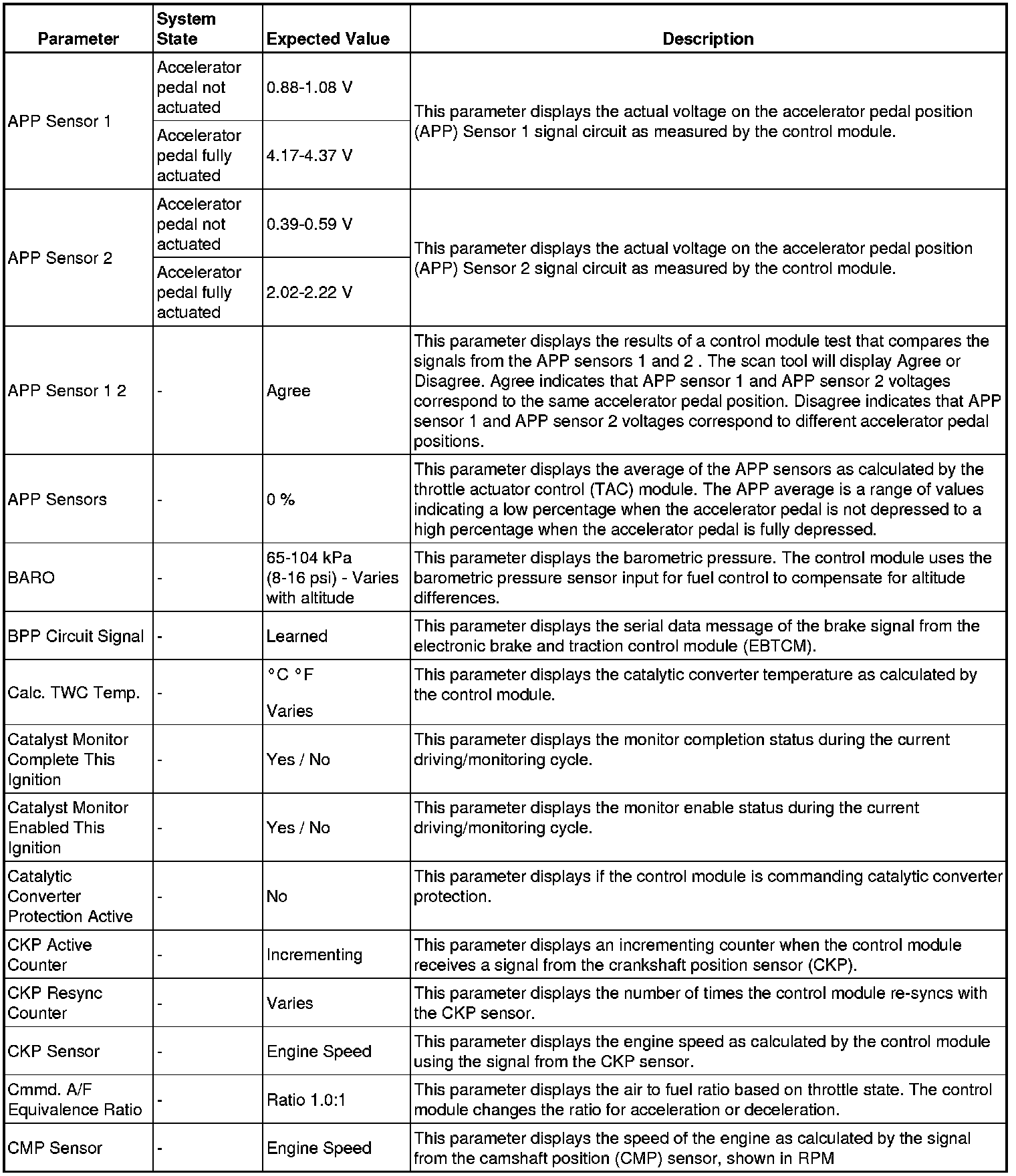 Only the parameters listed below are referenced in this service manual for use in diagnosis.