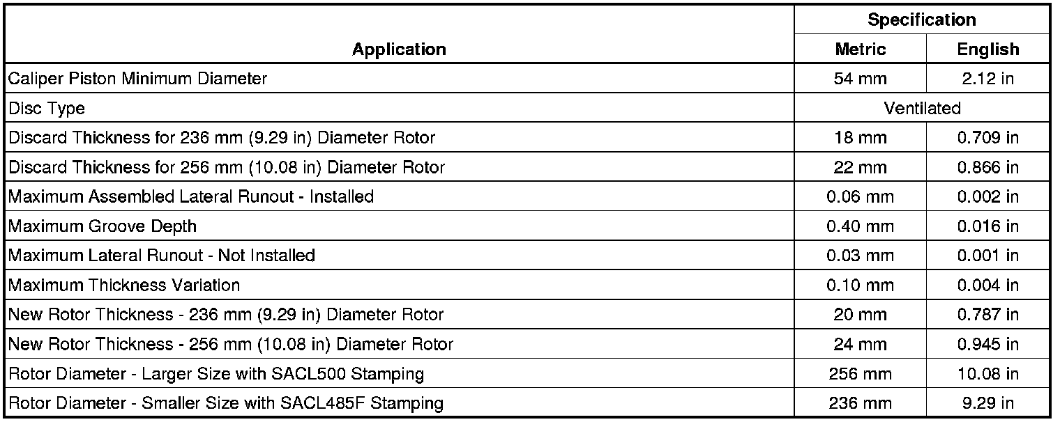 Disc Brake Component Specifications