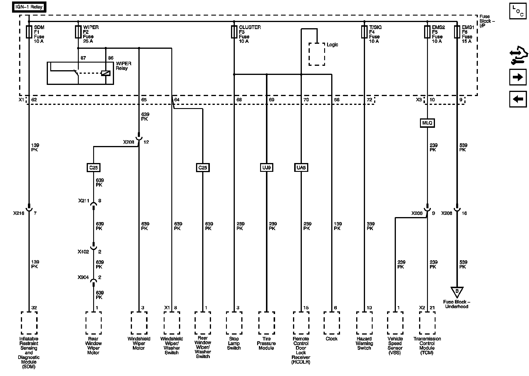 Fuse Block - Underhood: CLUSTER, EMS1, EMS2, SDM, T/SIG, and WIPER Fuses