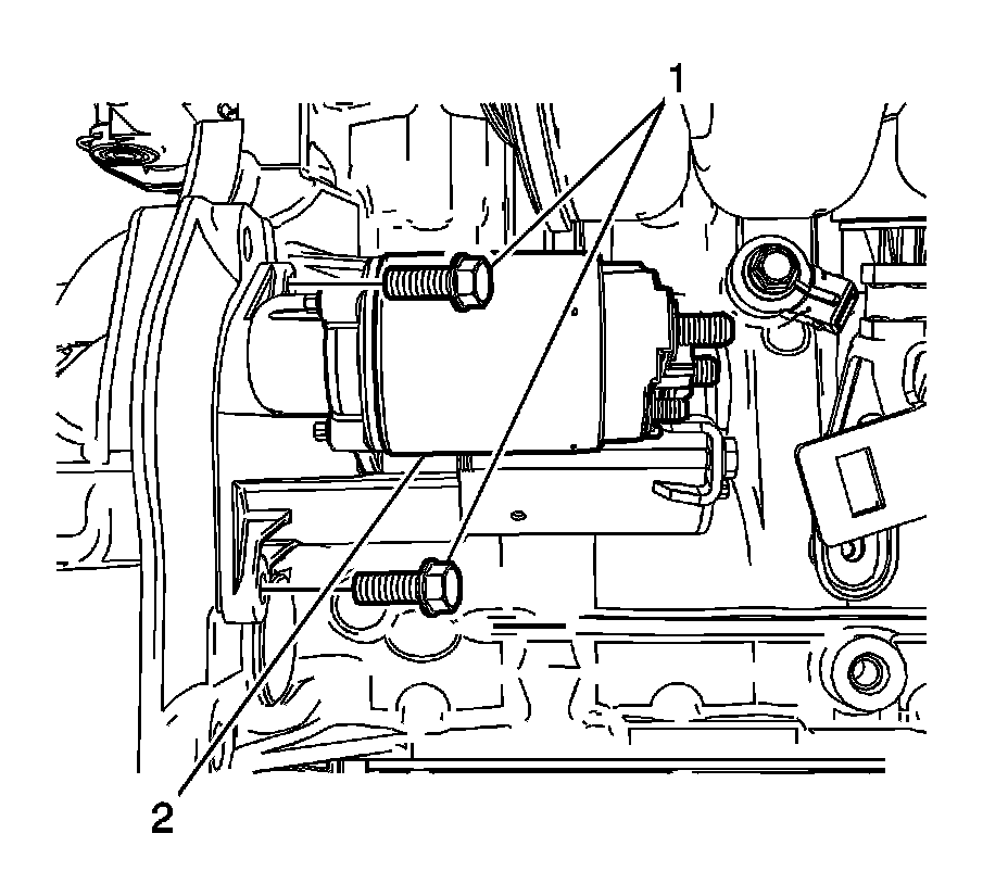 6. Remove the starter mounting bolts (1).