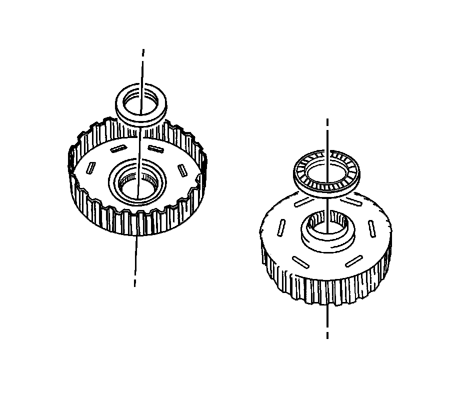 49. Remove the thrust needle roller bearing and thrust bearing race from the forward and reverse clutch assembly.