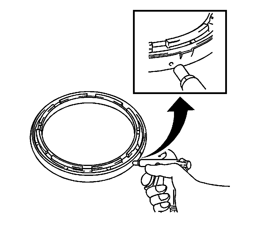 Caution: Do not chisel and remove the planetary ring gear nut staking before removing the nut. Damage to the planetary ring gear could result if force is applied. Remove the nut without unstaking the planetary ring gear. If force is used to unstake the planetary ring gear nut, damage the bearing could result.