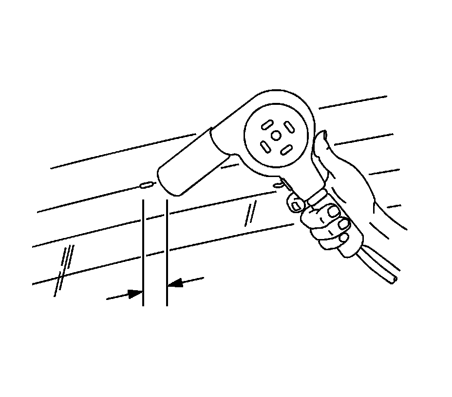 10. Hold the heat gun nozzle 25 mm (1 in) from the surface. A minimum temperature of 149°C (300°F) is required.