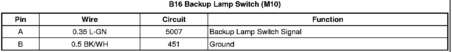 B16 Backup Lamp Switch (M10)