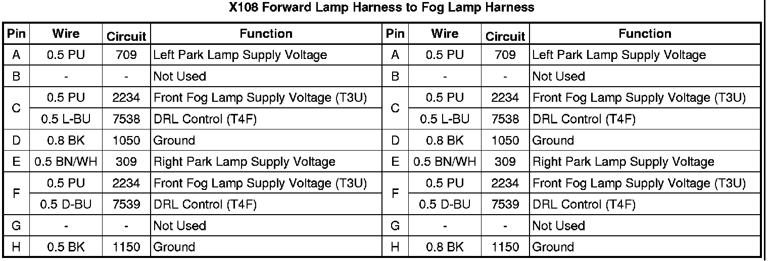 X108 Forward Lamp Harness to Fog Lamp Harness