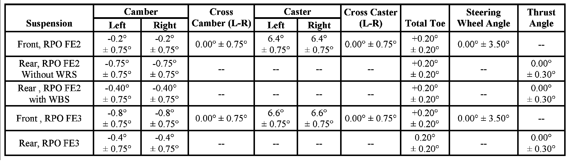 Wheel Alignment Specifications