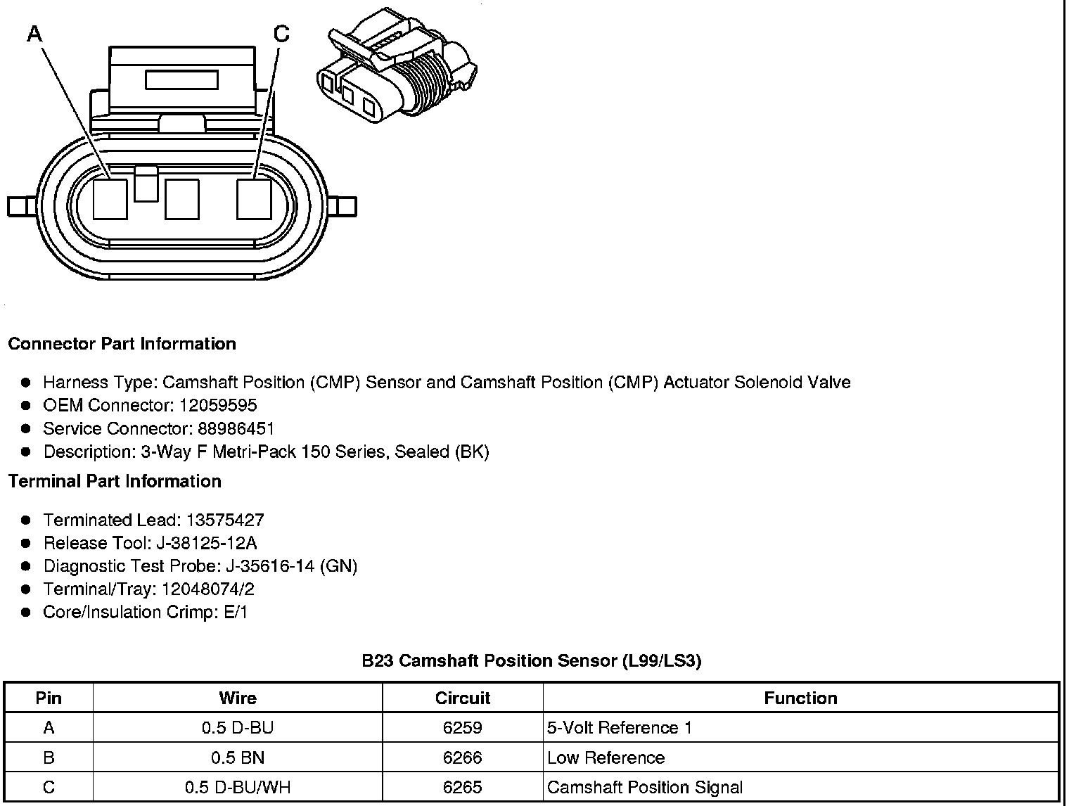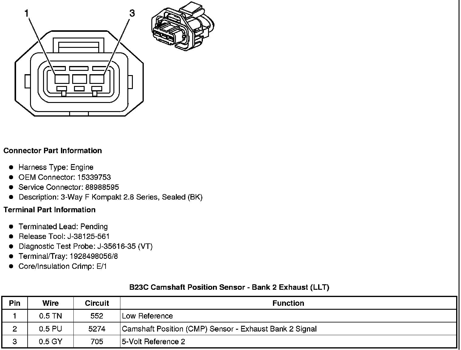 B23C Camshaft Position Sensor - Bank 2 Exhaust (LLT)