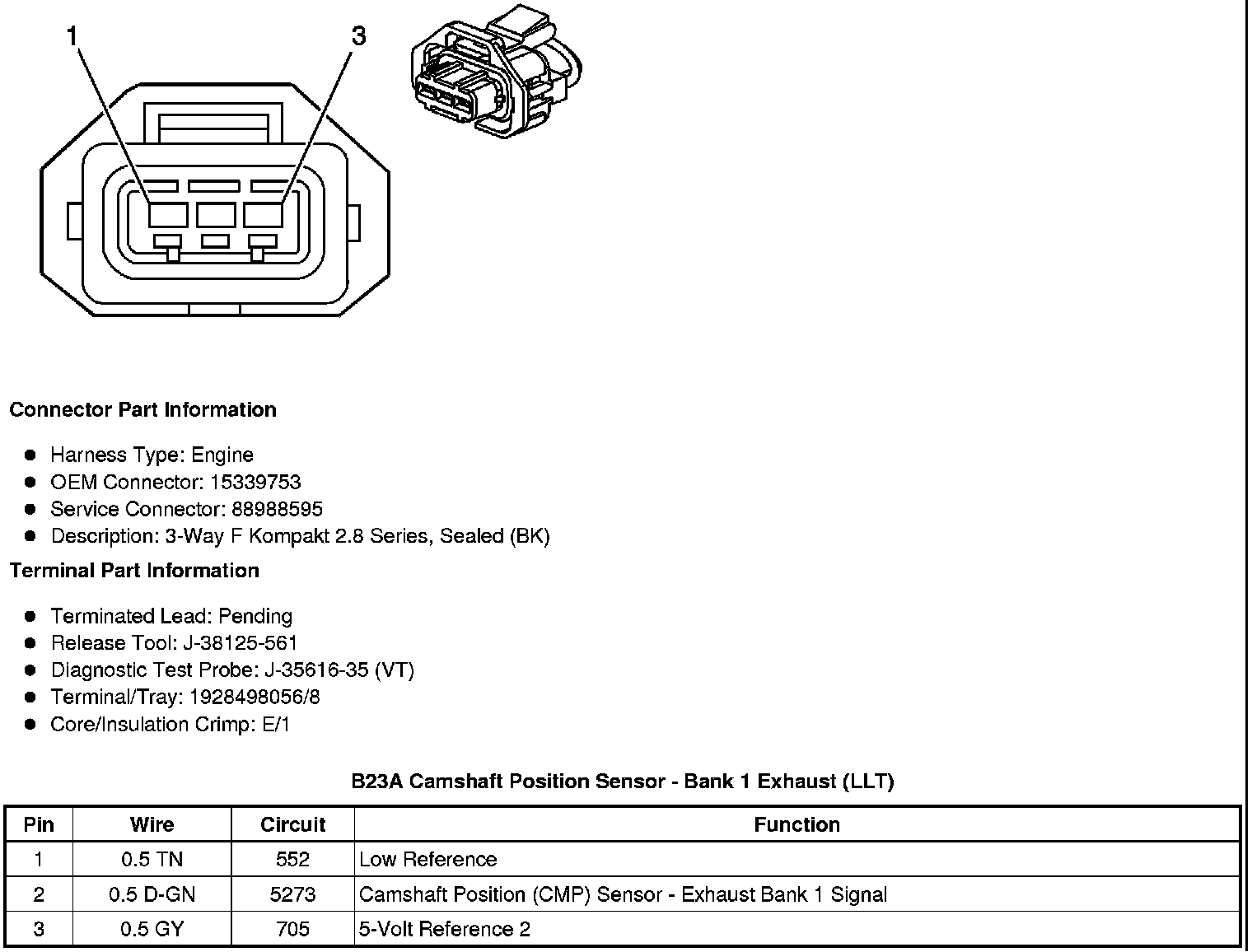 B23A Camshaft Position Sensor - Bank 1 Exhaust (LLT)