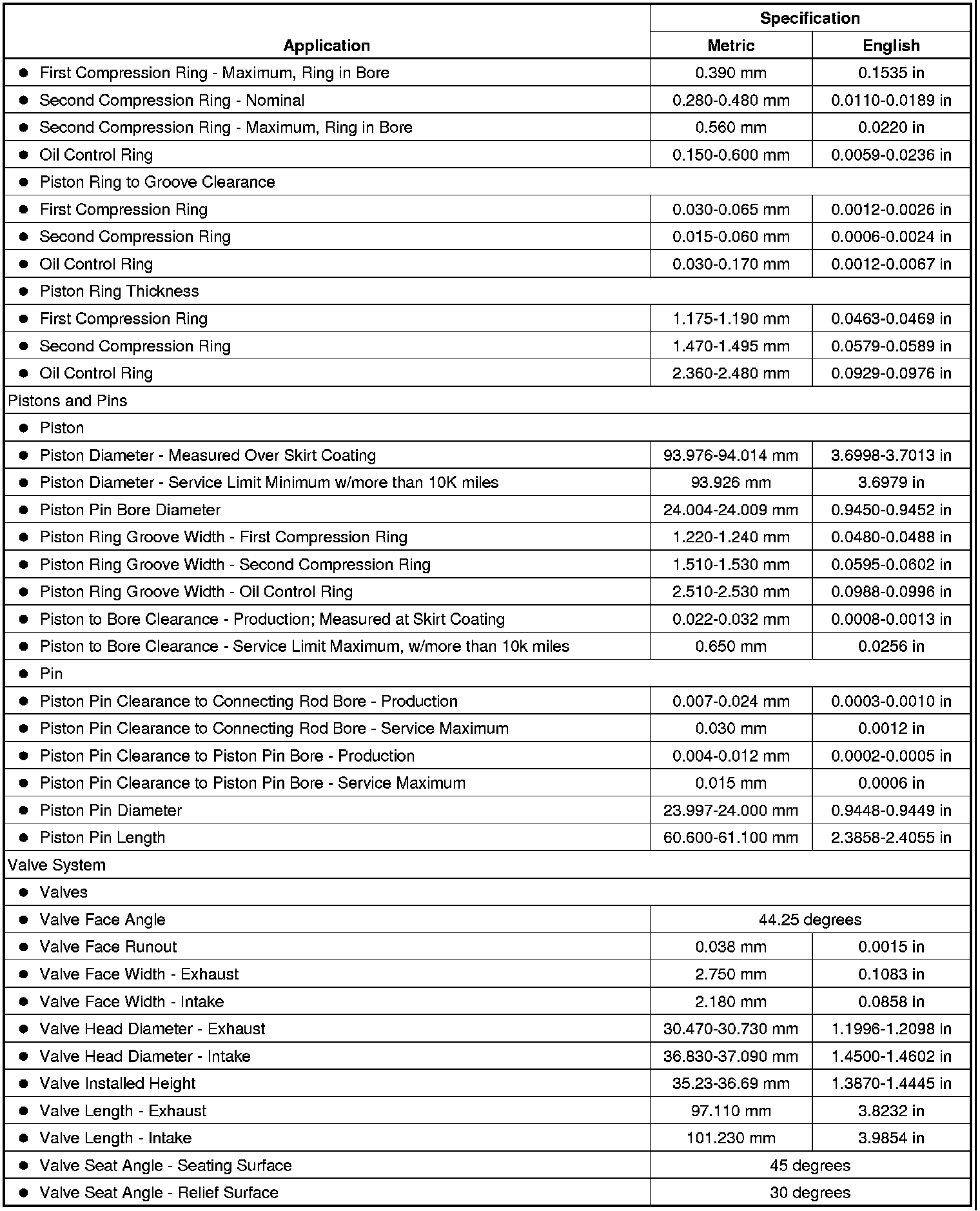 Engine Mechanical Specifications (LLT)