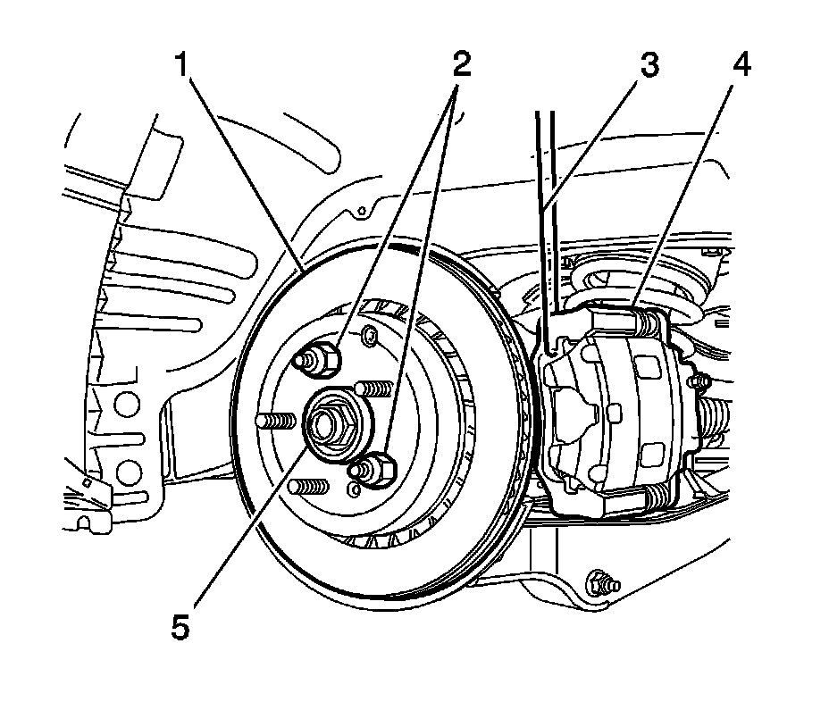 11.Support the brake caliper (4) with heavy mechanic's wire, or equivalent (3).
