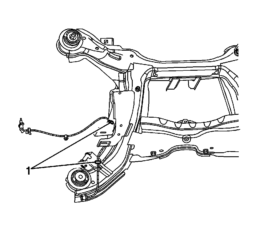 2.Connect the rear frame wiring harness to rear subframe center retaining clips (1).